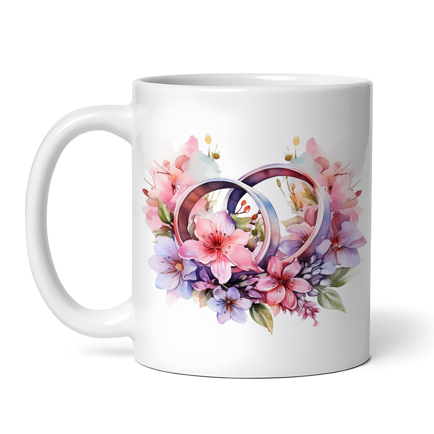 Cana ceramica, Verighete Viata ca un curcubeu, NO5671, 330 ml, Multicolor
