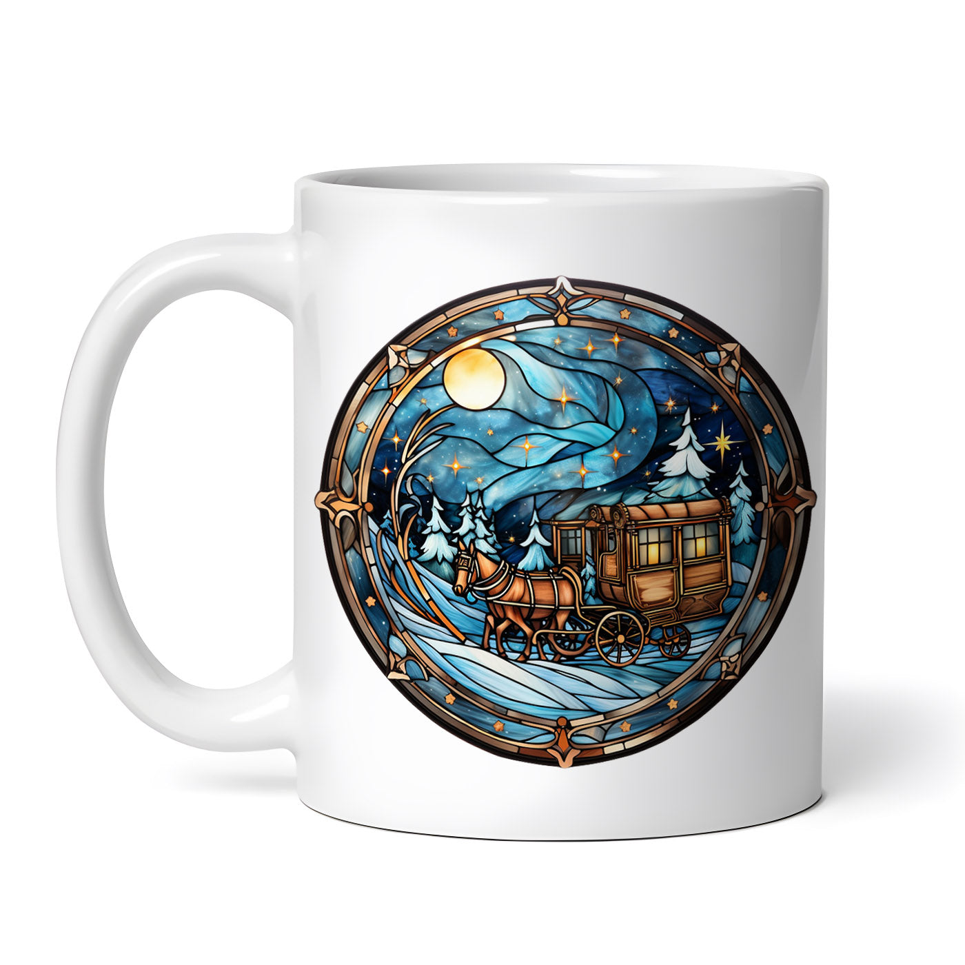 Cana ceramica, Vitraliu Caleasca cu cai, NO5406, 330 ml, Multicolor