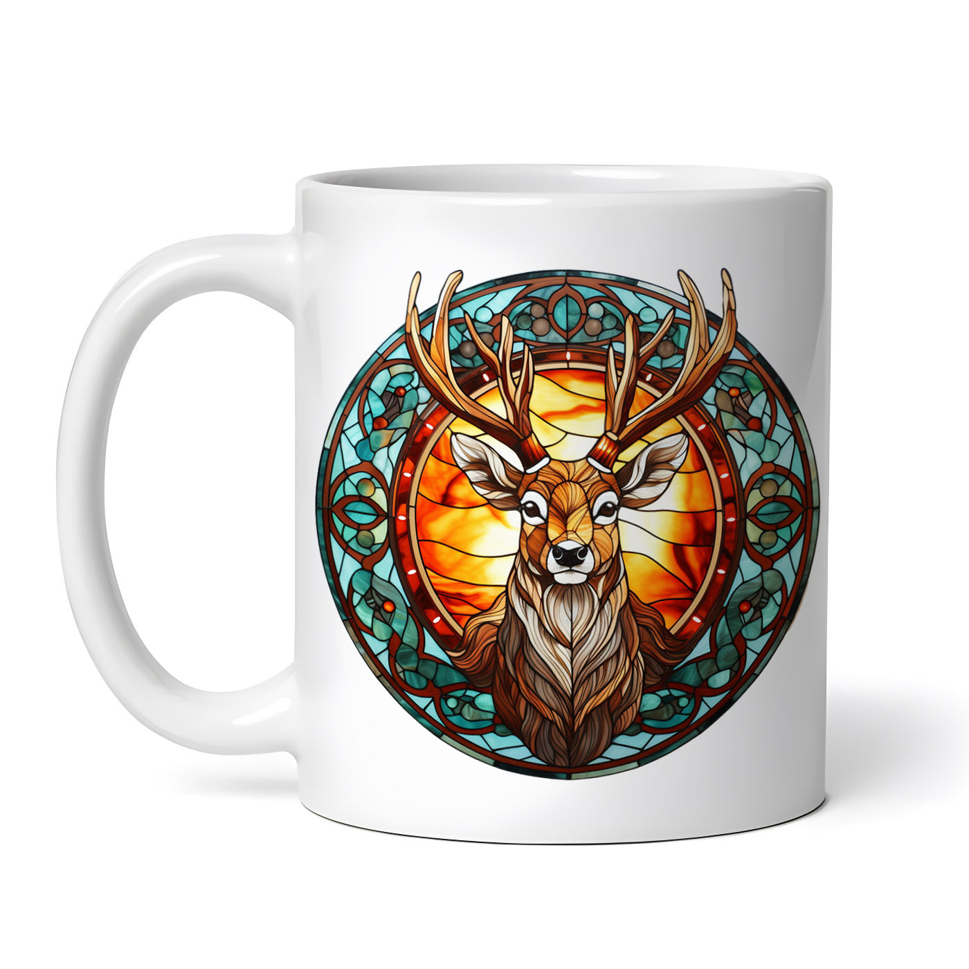 Cana ceramica, Vitraliu cap de ren, NO6156, 330 ml, Multicolor