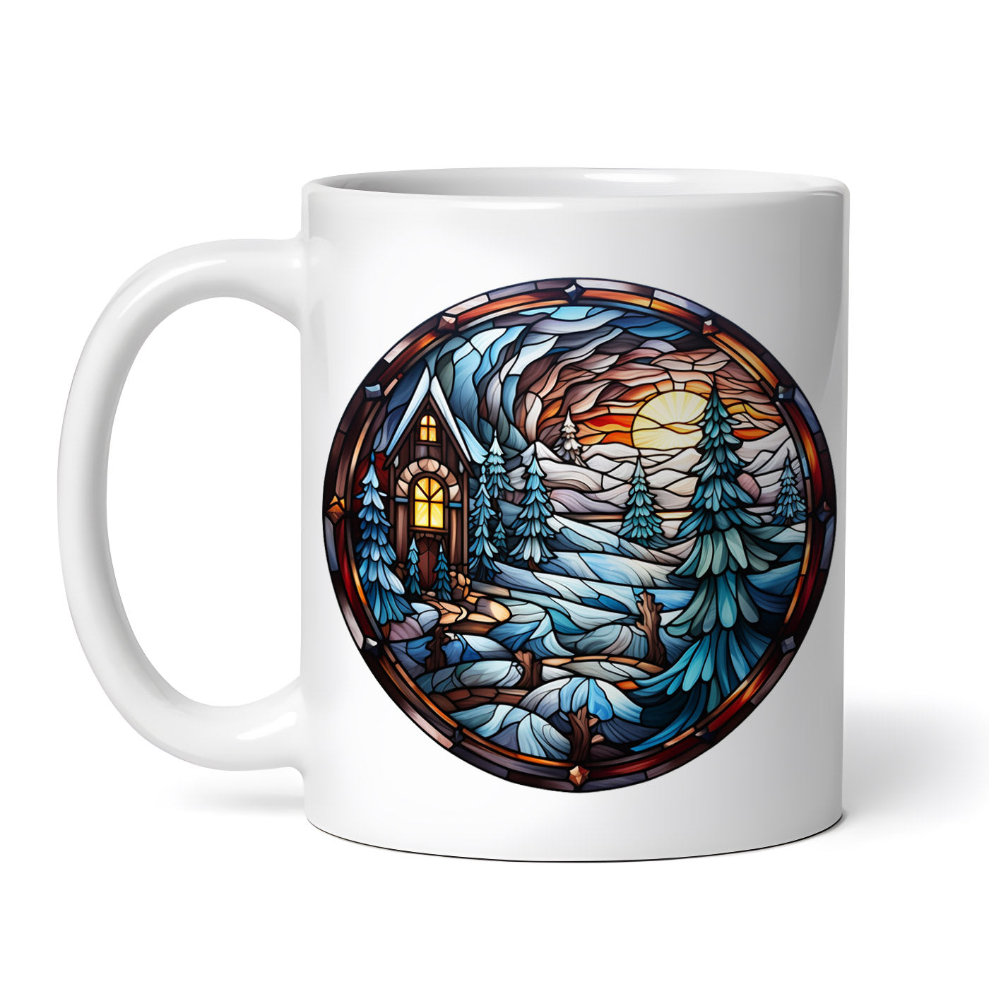 Cana ceramica, Vitraliu casa luminata, NO2096, 330 ml, Multicolor