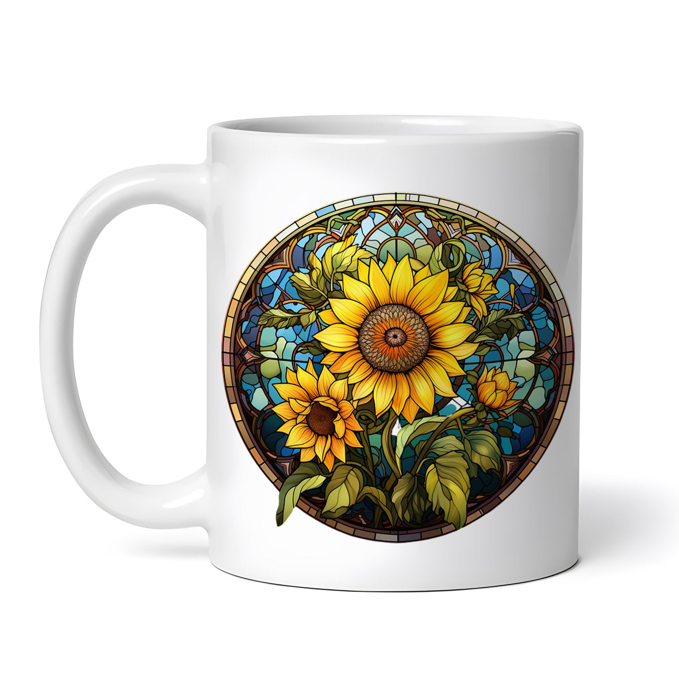 Cana ceramica, Vitraliu floarea soarelui cu puii, NO1313, 330 ml, Multicolor