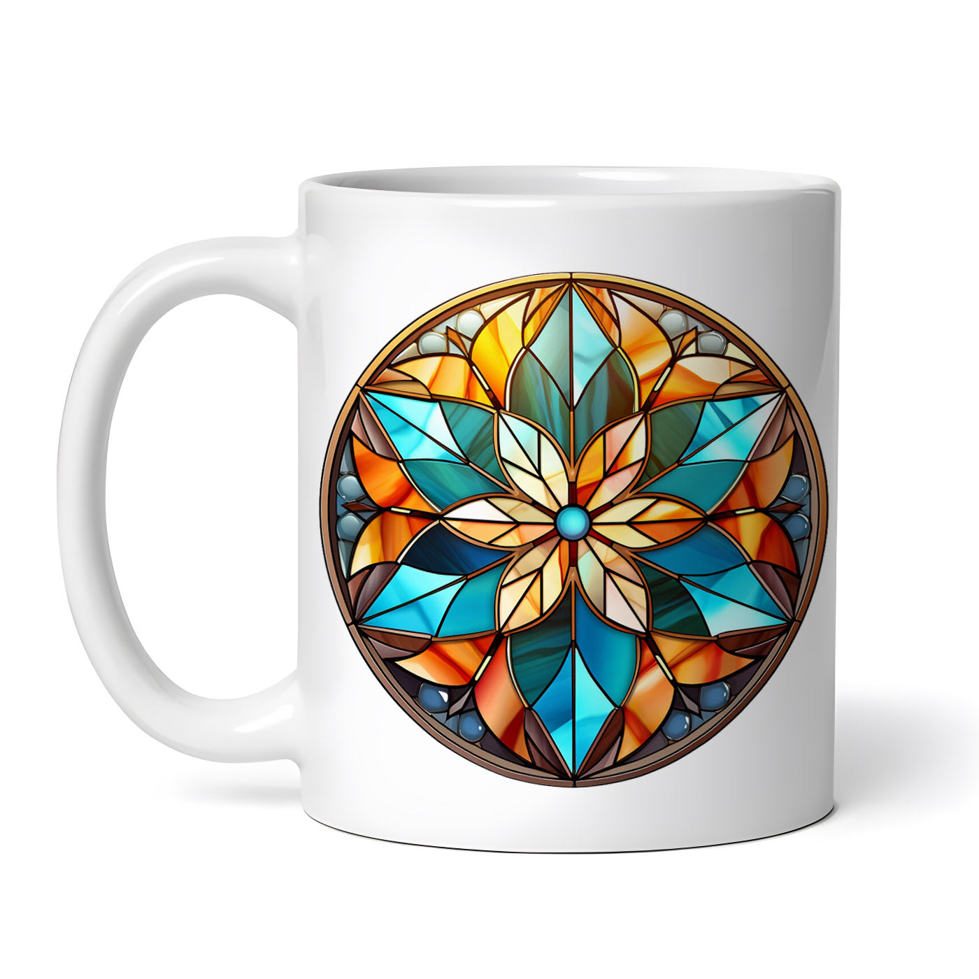 Cana ceramica, Vitraliu floral, NO5350, 330 ml, Multicolor