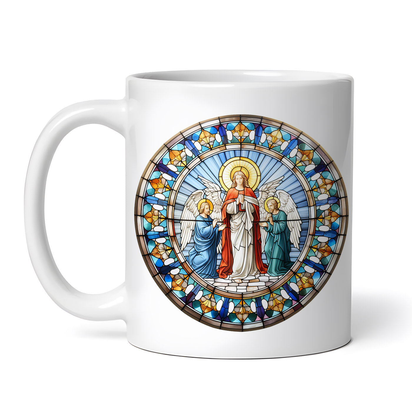 Cana ceramica, Vitraliu Maica Domnului si Ingerii, NO4710, 330 ml, Multicolor