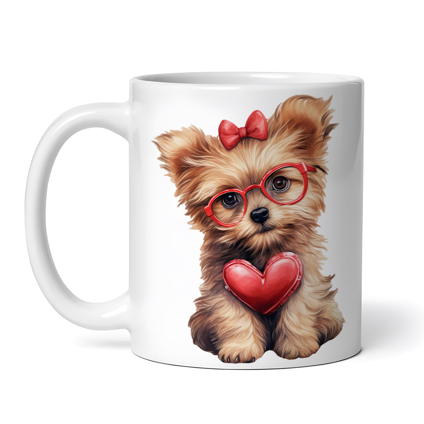 Cana ceramica, Yorkshire Terrier cu ochelari si funda rosie in caphire Terrier , NO1892, 330 ml, Multicolor