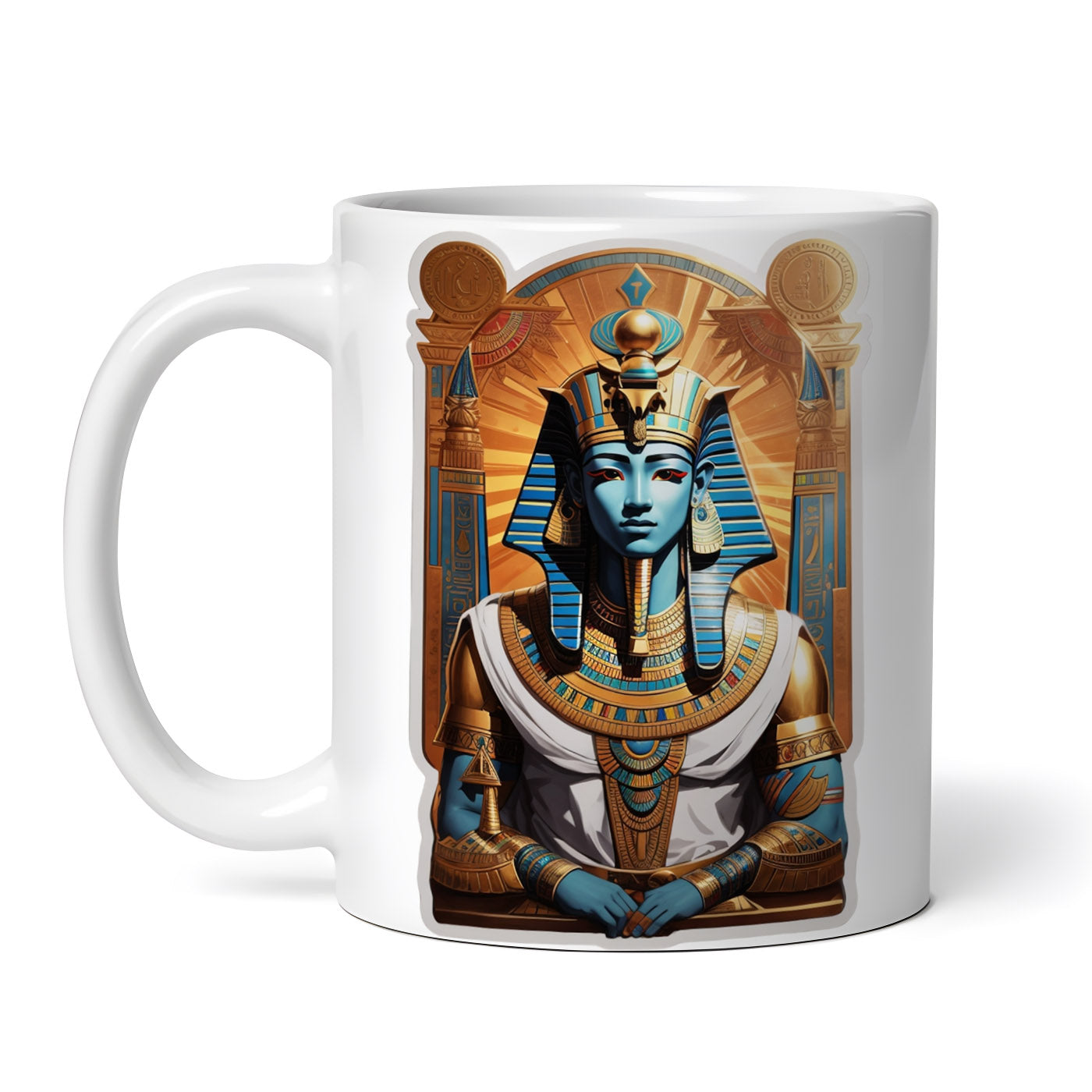 Cana ceramica, Zeul egiptean Min pe tron, NO8560, 330 ml, Multicolor