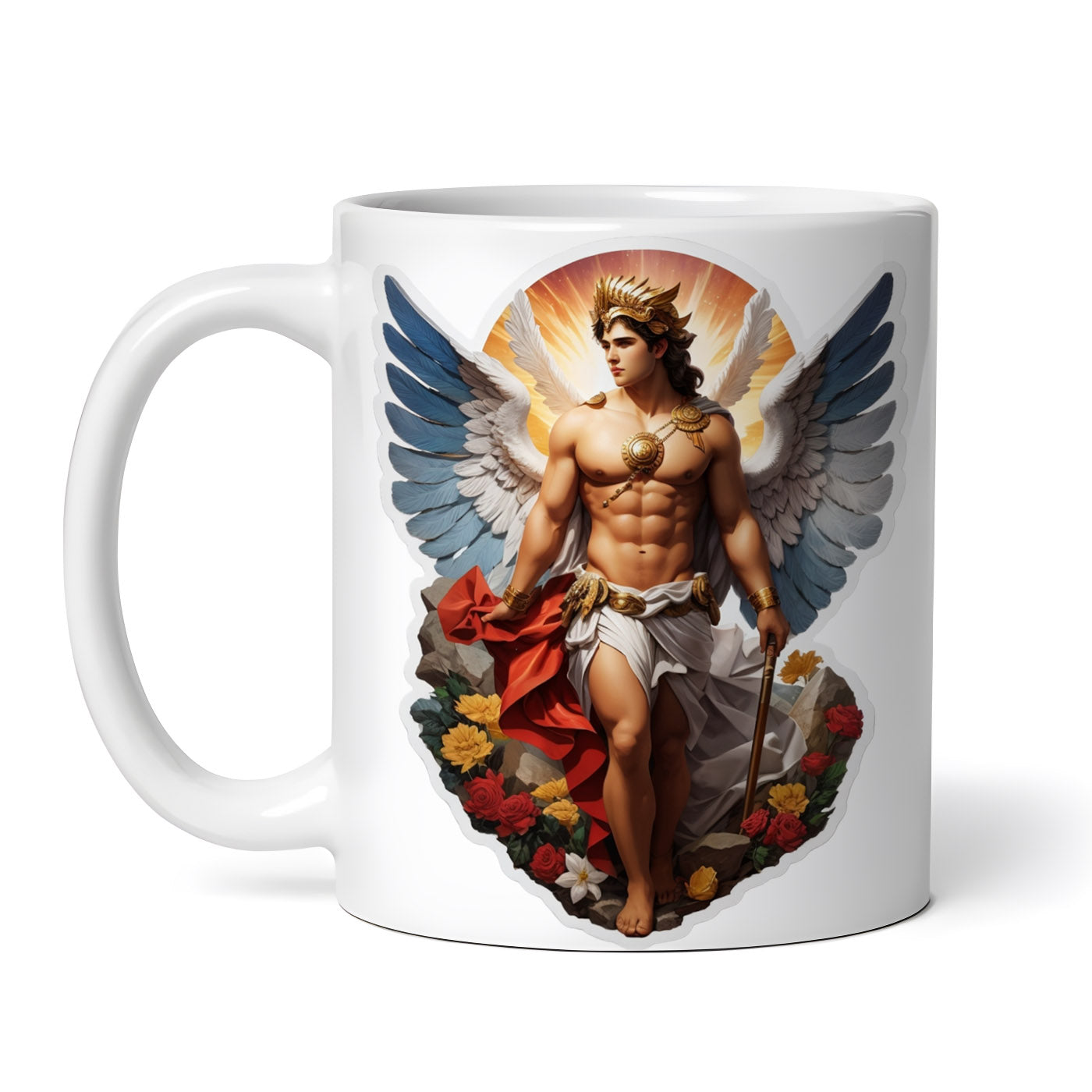 Cana ceramica, Zeul grec Eros cu aripi si tolba, NO8138, 330 ml, Multicolor