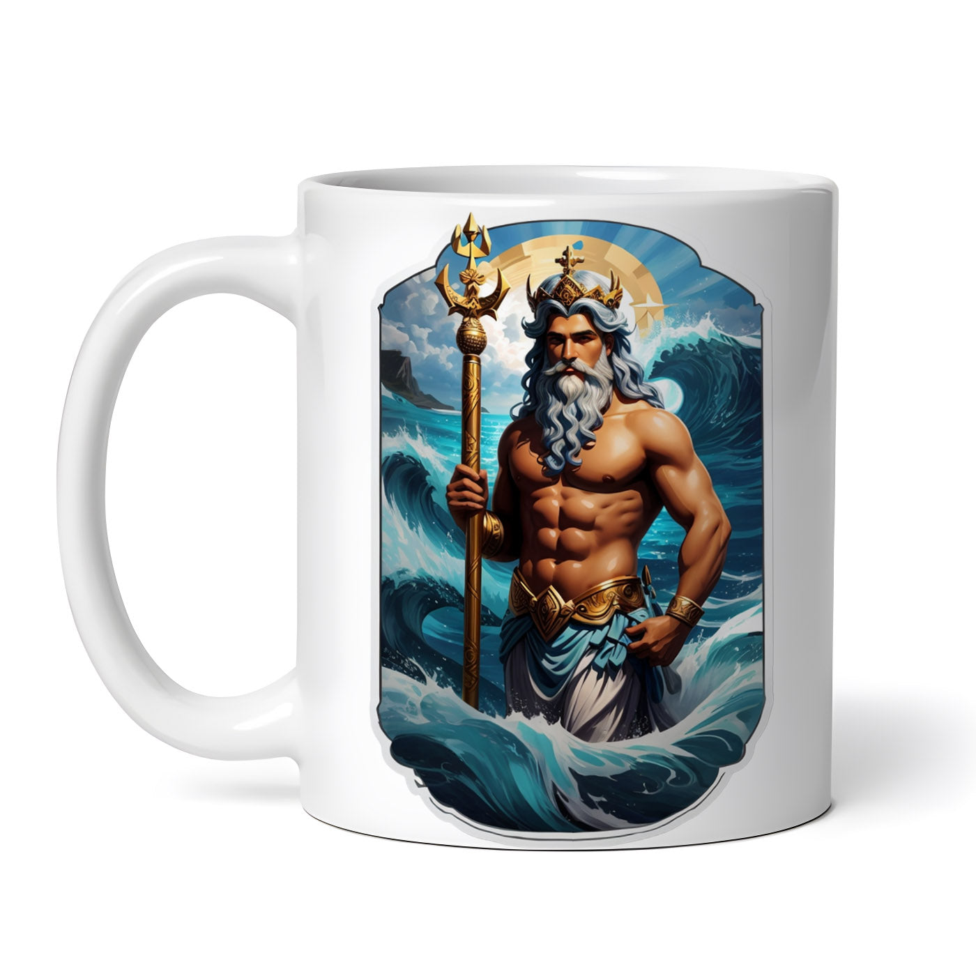 Cana ceramica, Zeul grec Poseidon cu sceptru, NO8762, 330 ml, Multicolor