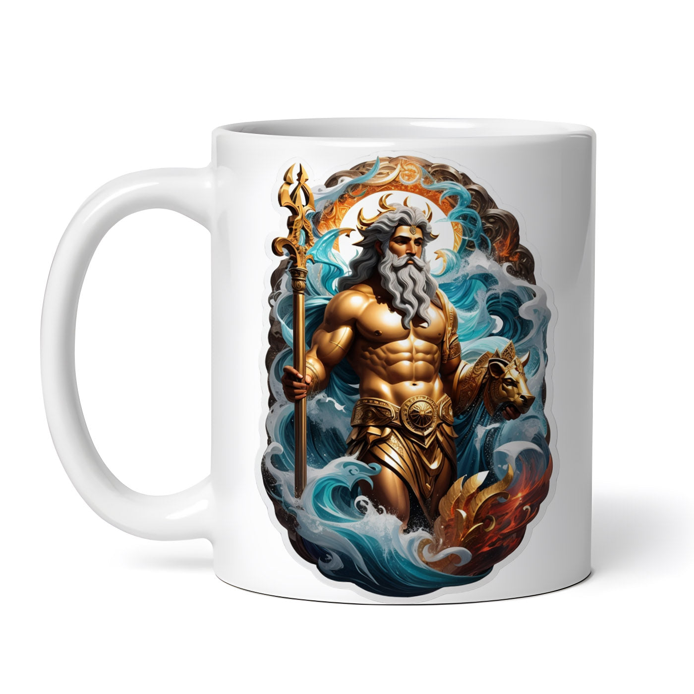 Cana ceramica, Zeul grec Poseidon pe apa, NO8764, 330 ml, Multicolor