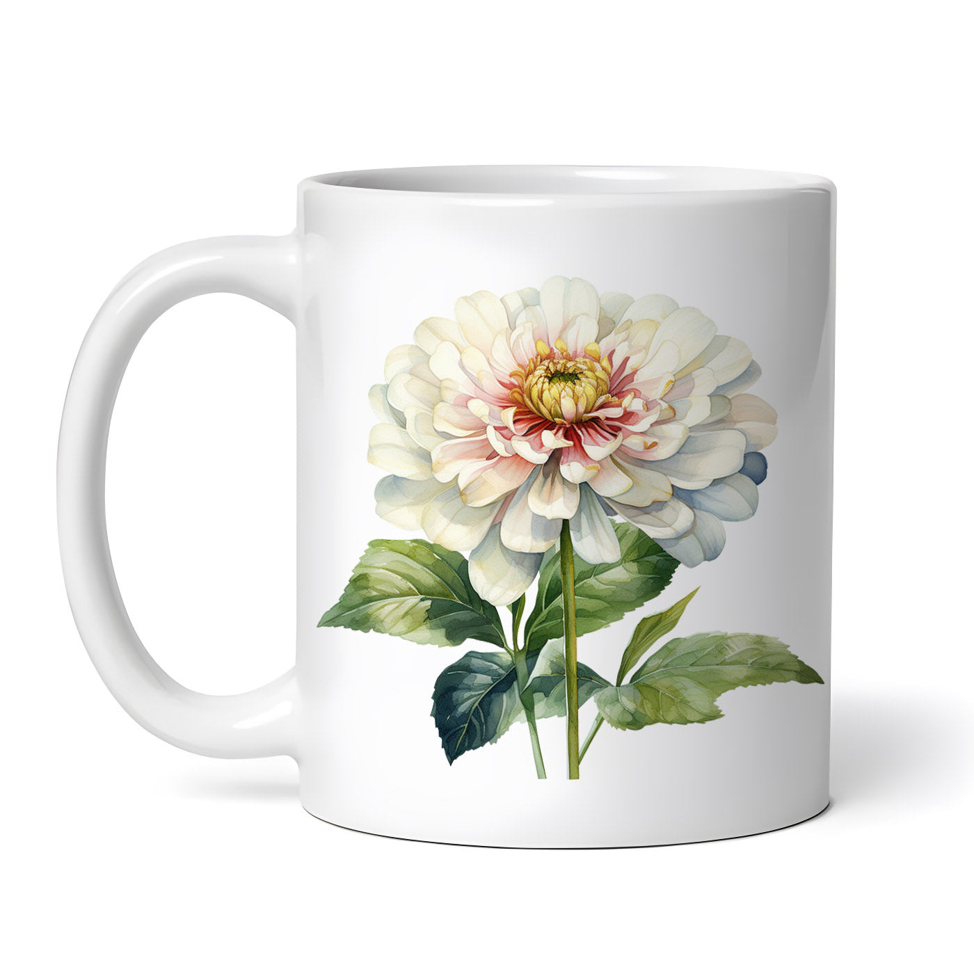 Cana ceramica, Zinnia alba, NO4559, 330 ml, Multicolor