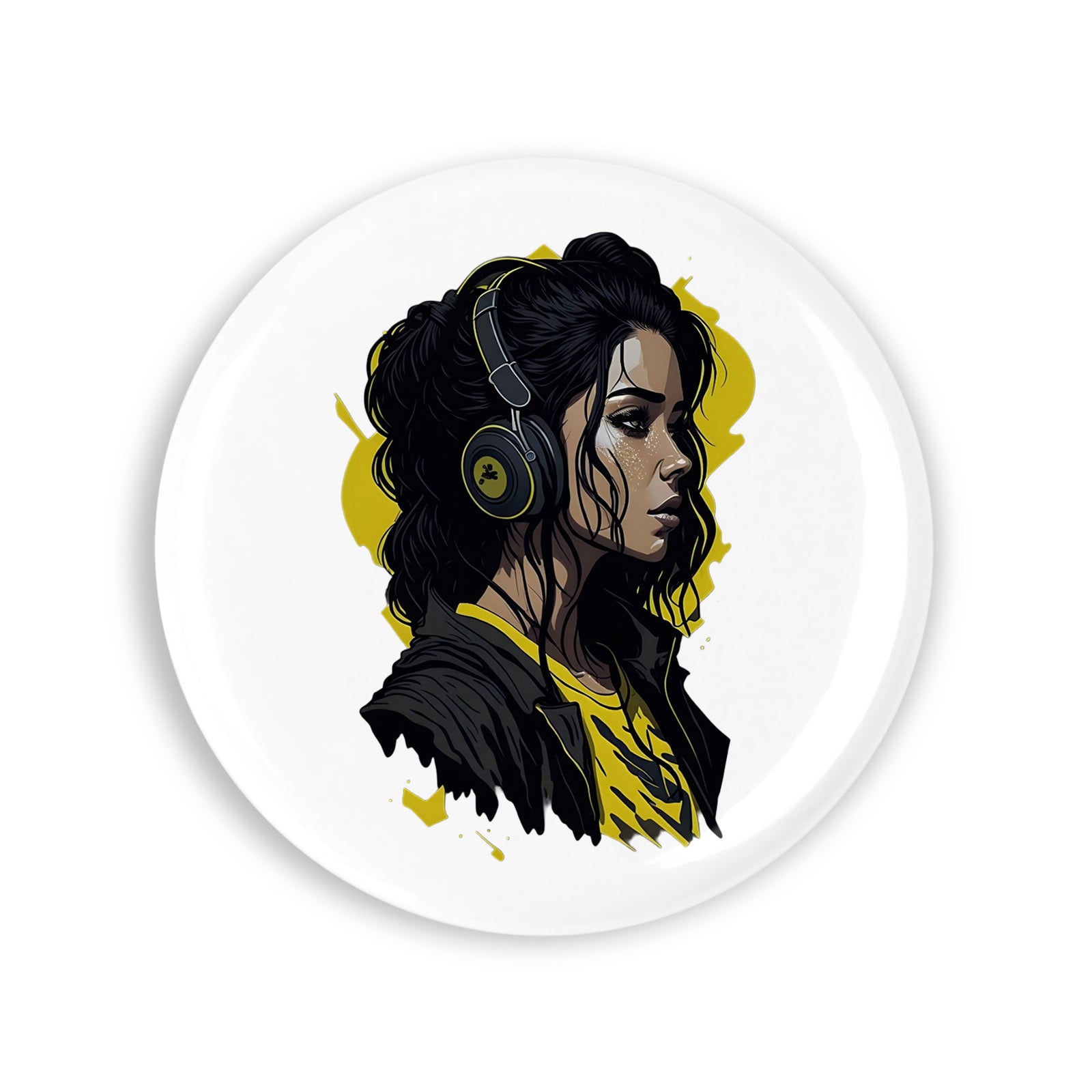 Set 4 insigne, Fata cu casti, NO6784, Metal, 44 mm, Multicolor