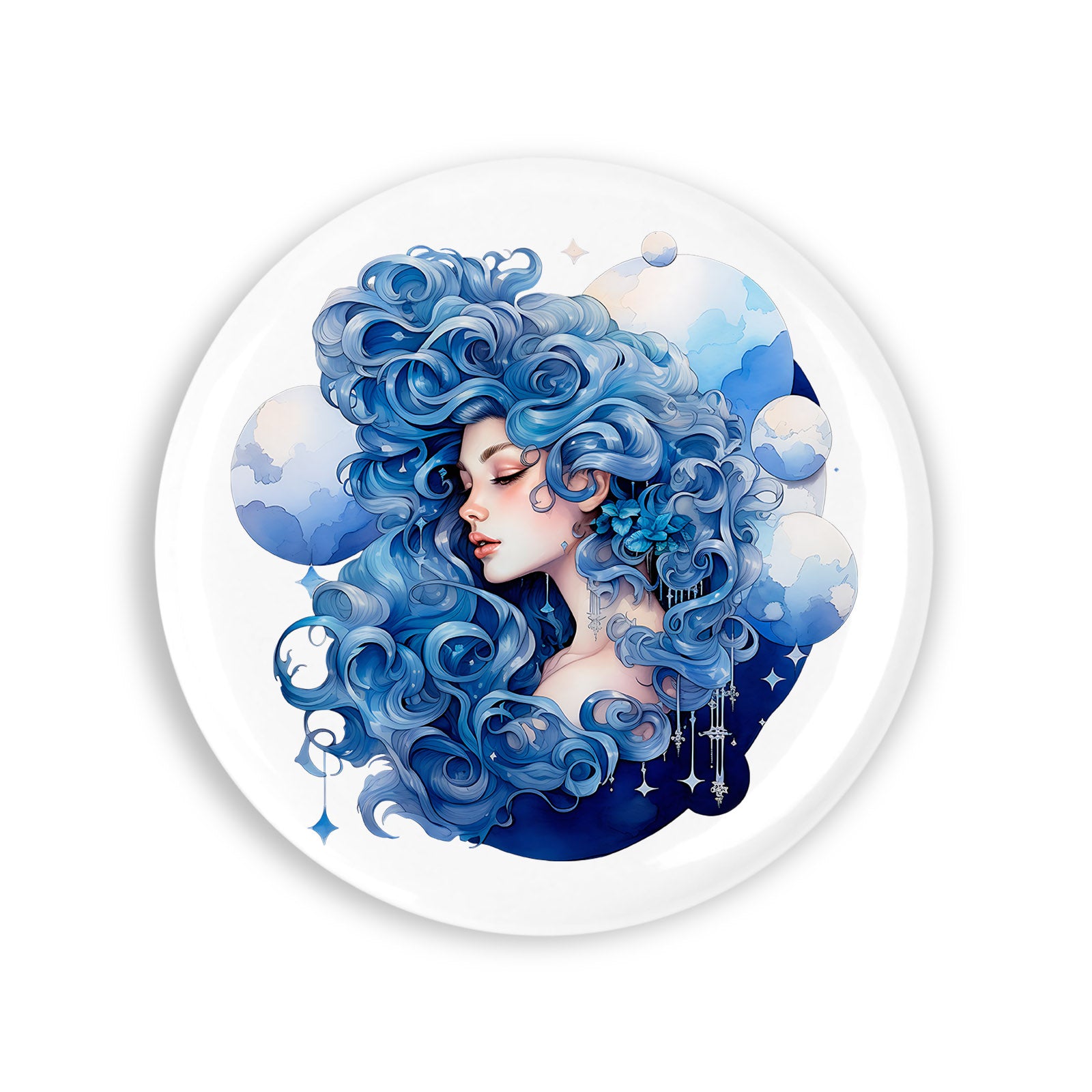 Set 4 insigne, Fata cu parul albastru si flori in par, NO5121, Metal, 44 mm, Multicolor