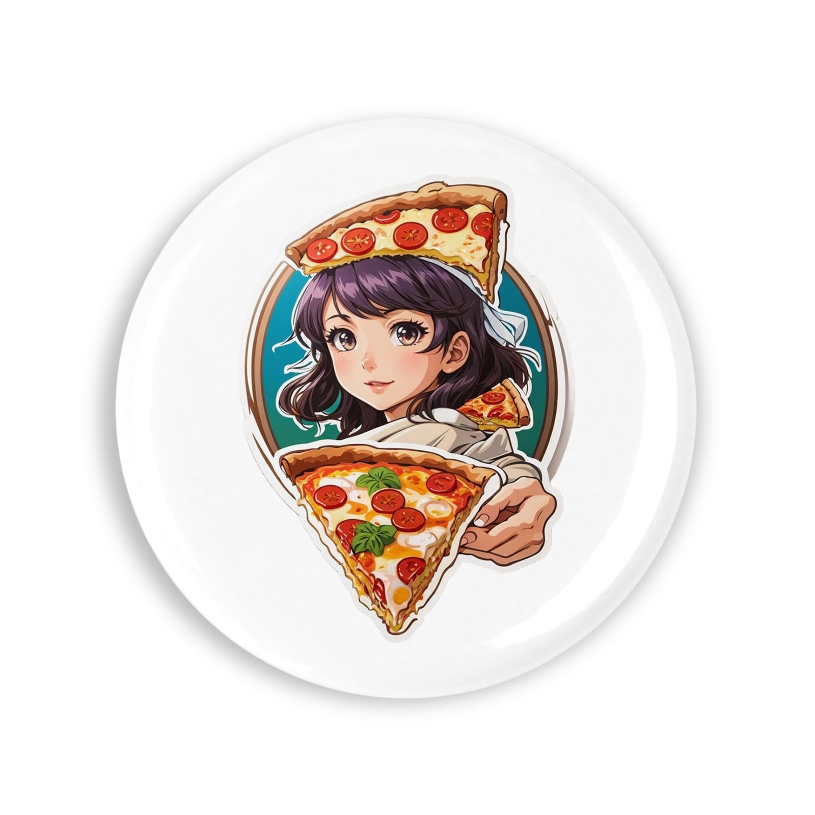 Set 4 insigne, Fata cu pizza, NO7347, Metal, 44 mm, Multicolor