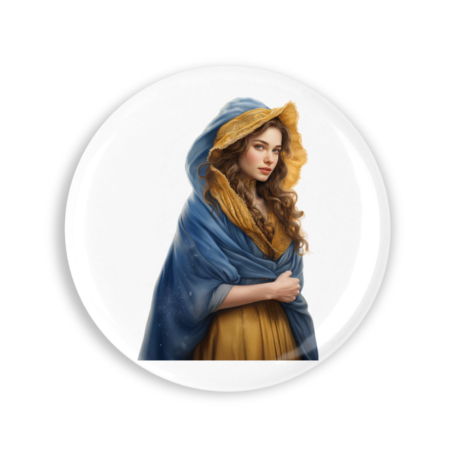 Set 4 insigne, Fata cu rochie galbena, NO6175, Metal, 44 mm, Multicolor