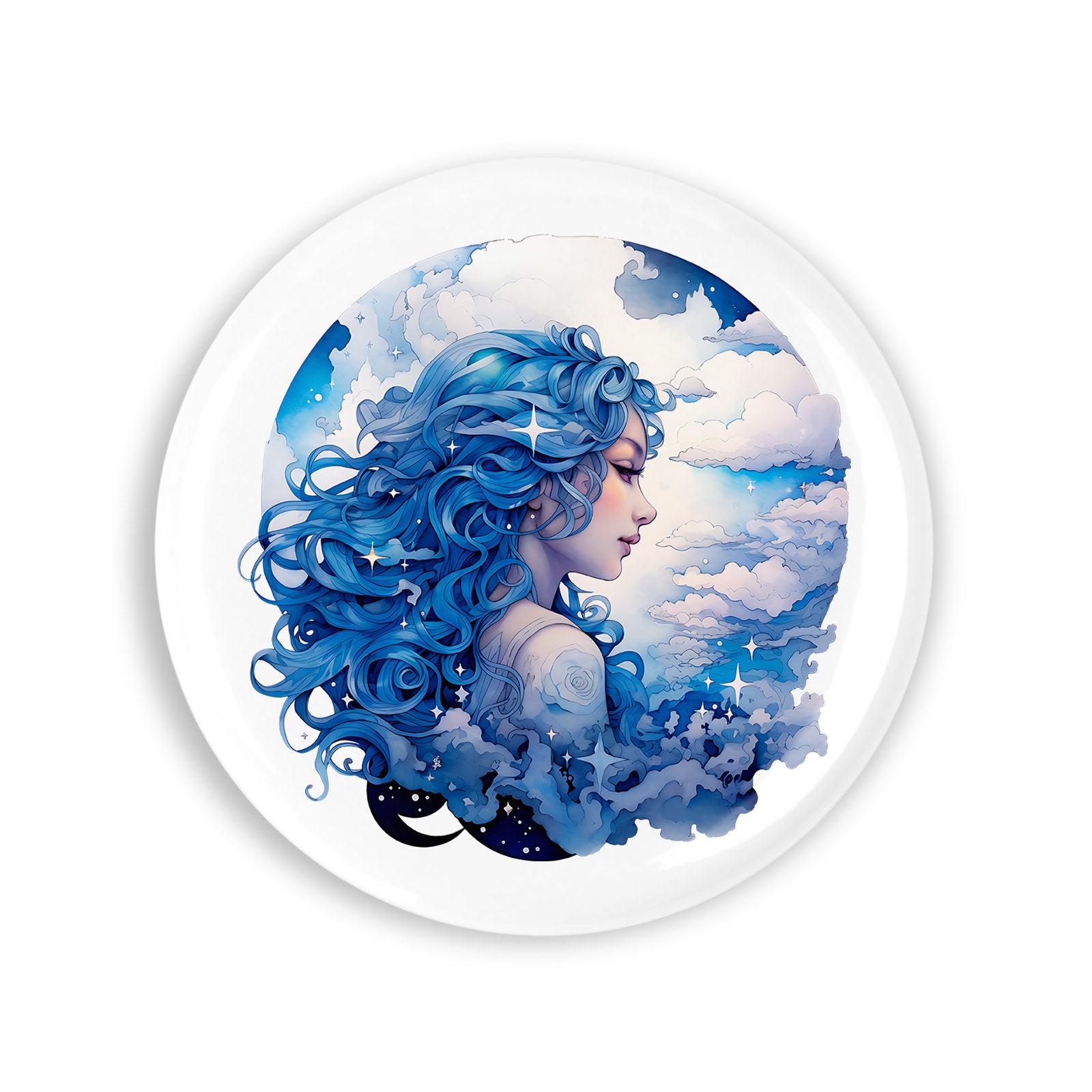 Set 4 insigne, Fata din nori cu par albastru, NO6332, Metal, 44 mm, Multicolor