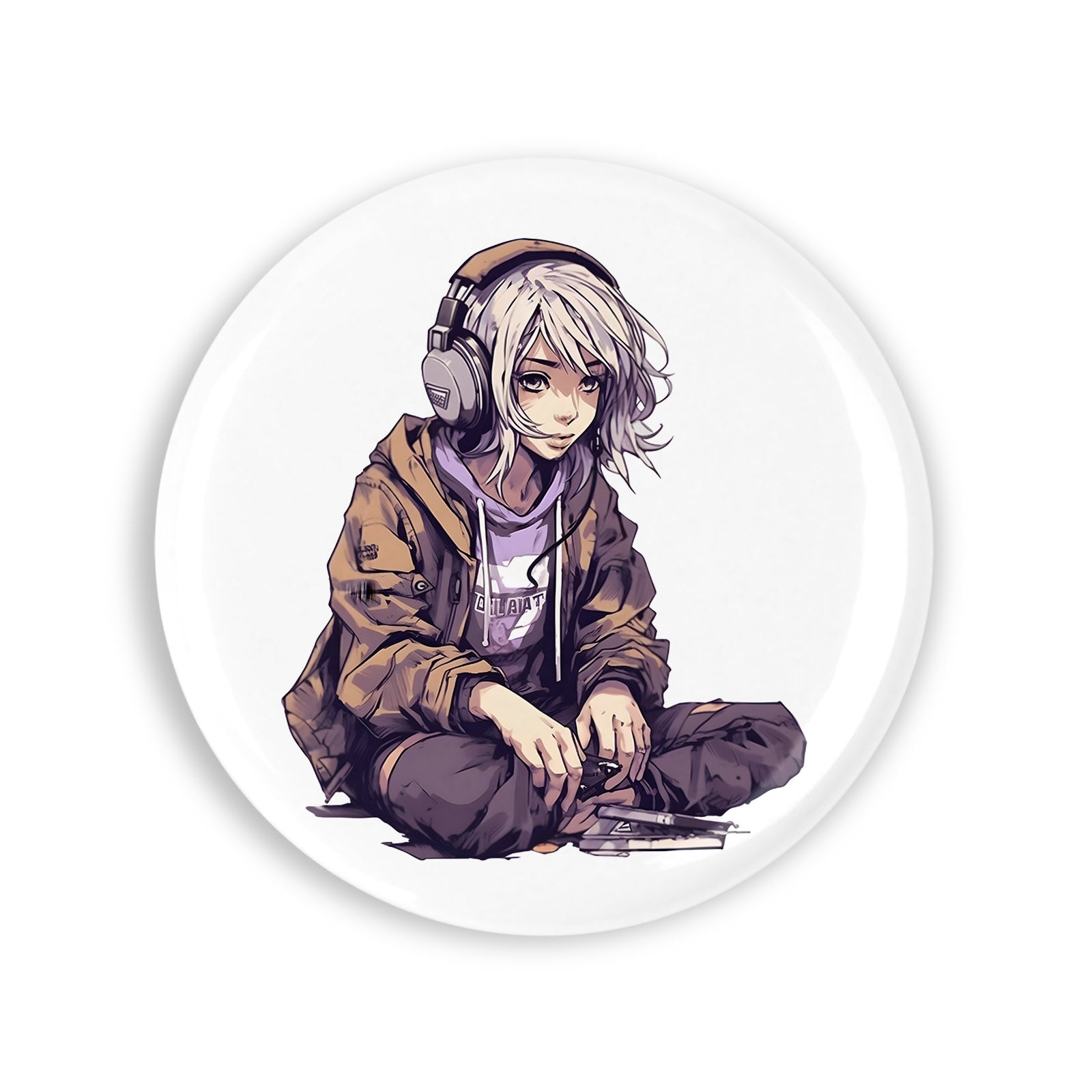 Set 4 insigne, Fata platinata cu casti, NO2976, Metal, 44 mm, Multicolor