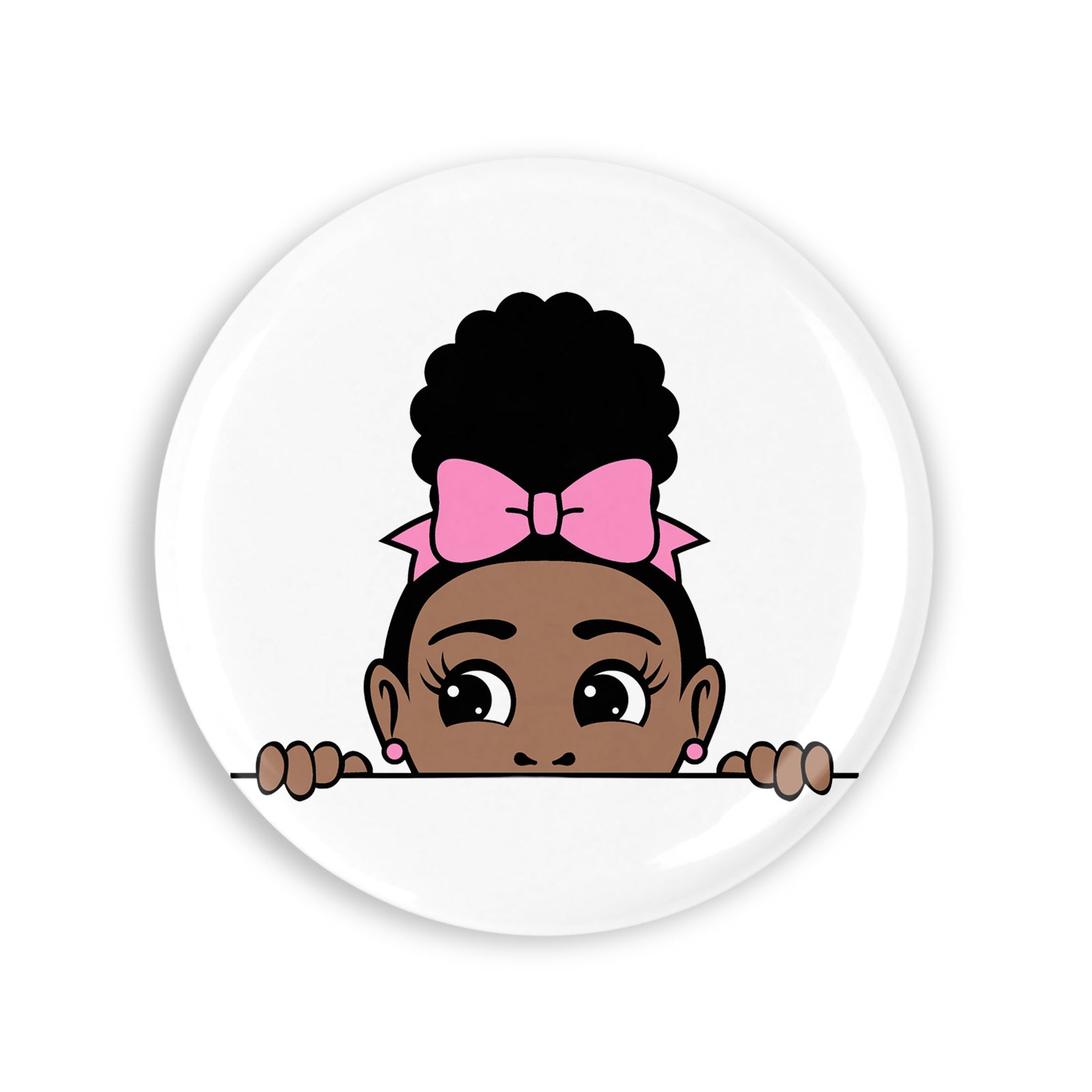 Set 4 insigne, Fetita afro cu funda in par, NO10096, Metal, 44 mm, Multicolor