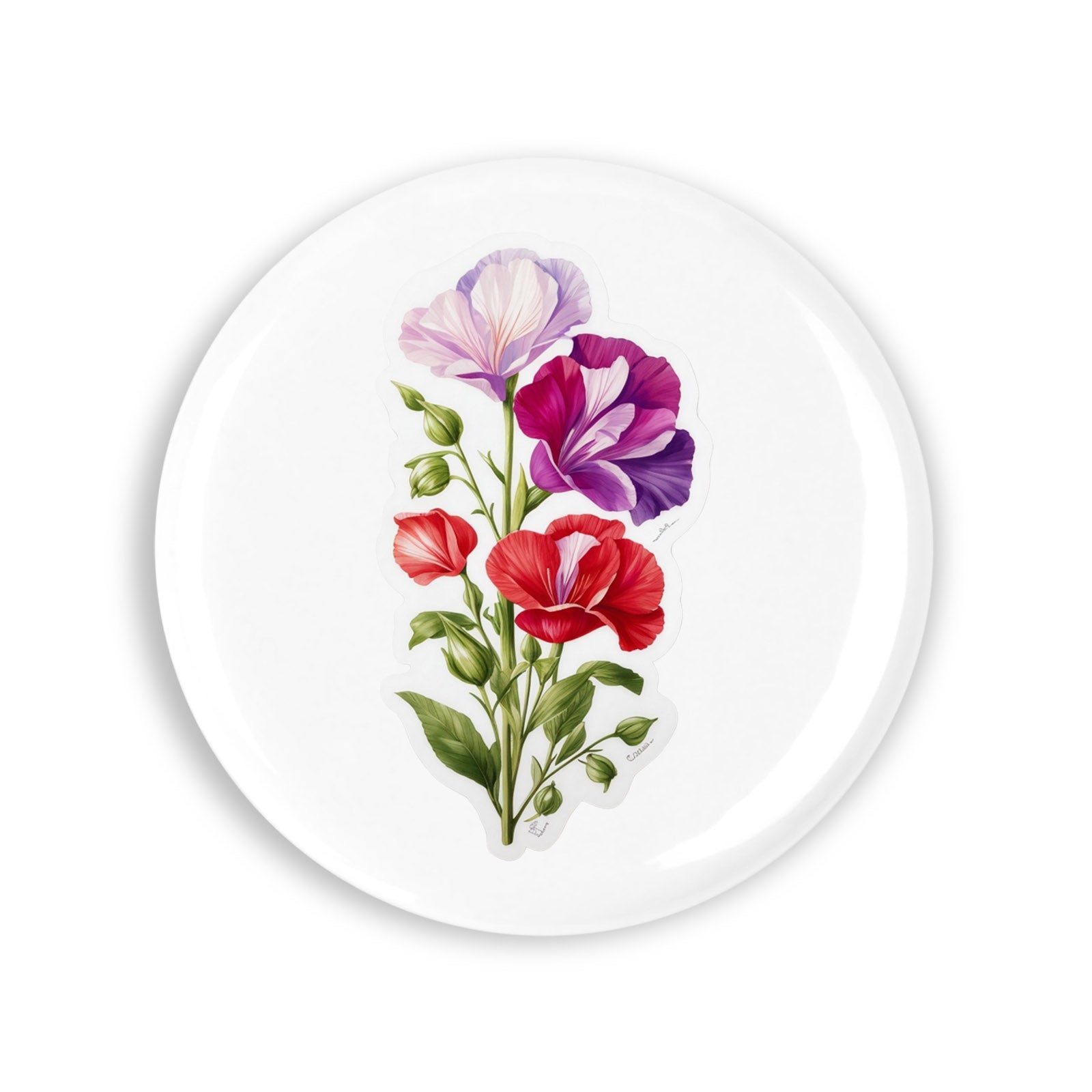 Set 4 insigne, Floare de Sweet Pea, NO8940, Metal, 44 mm, Multicolor