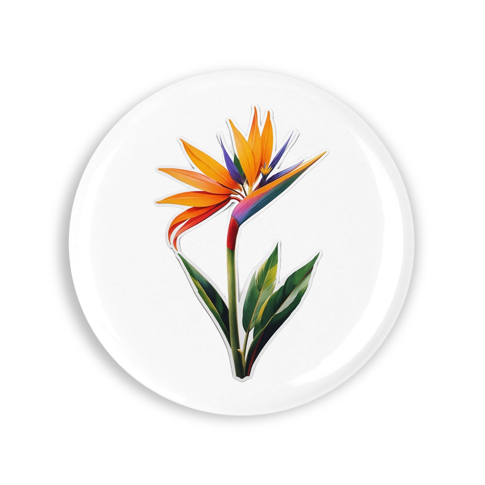 Set 4 insigne, Floare pasarea paradisului cu coada scurta, NO7817, Metal, 44 mm, Multicolor
