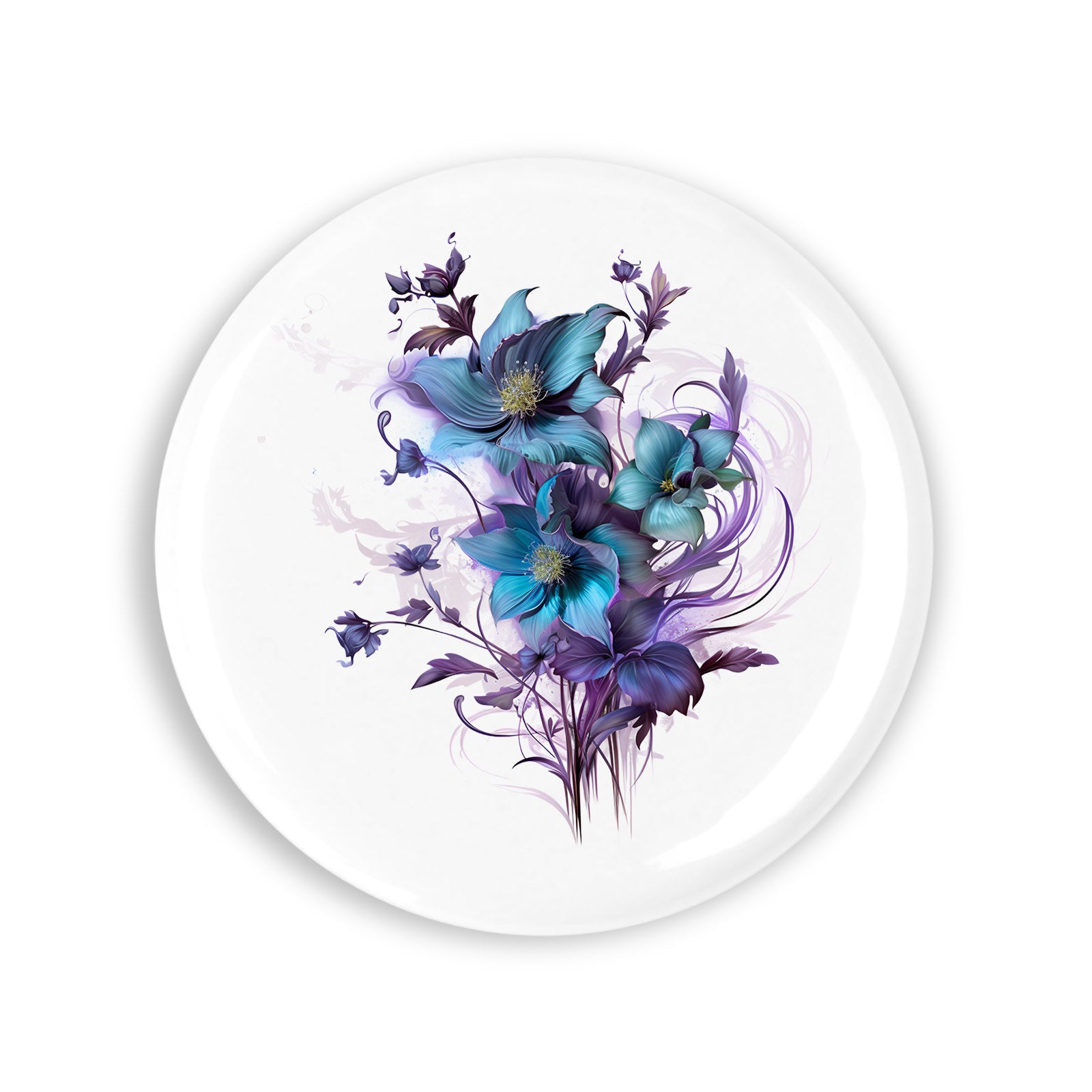 Set 4 insigne, Flori albastre, NO6242, Metal, 44 mm, Multicolor