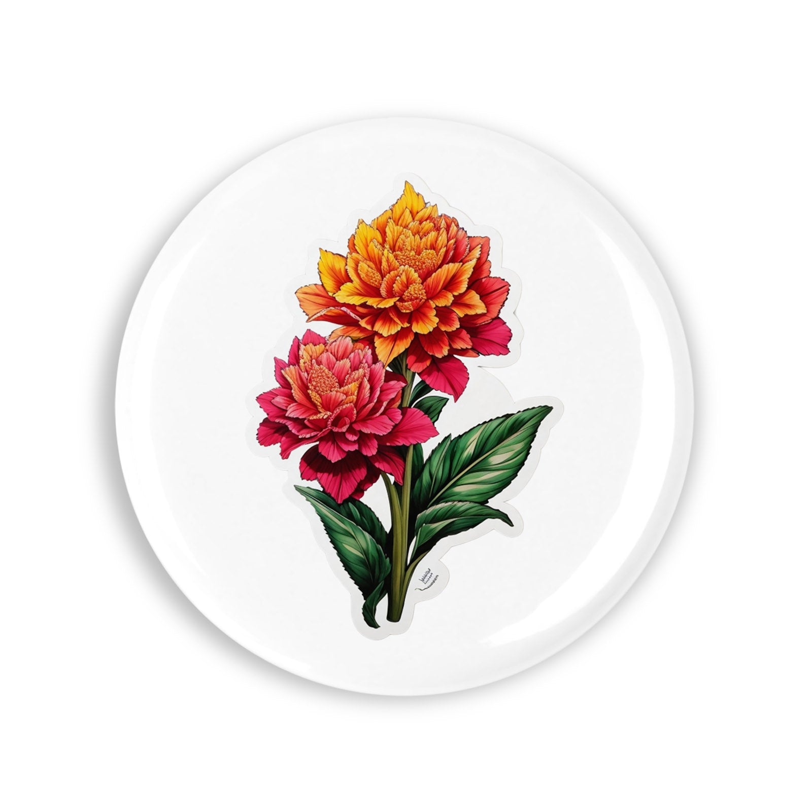 Set 4 insigne, Flori Creasta cocosului, NO7952, Metal, 44 mm, Multicolor