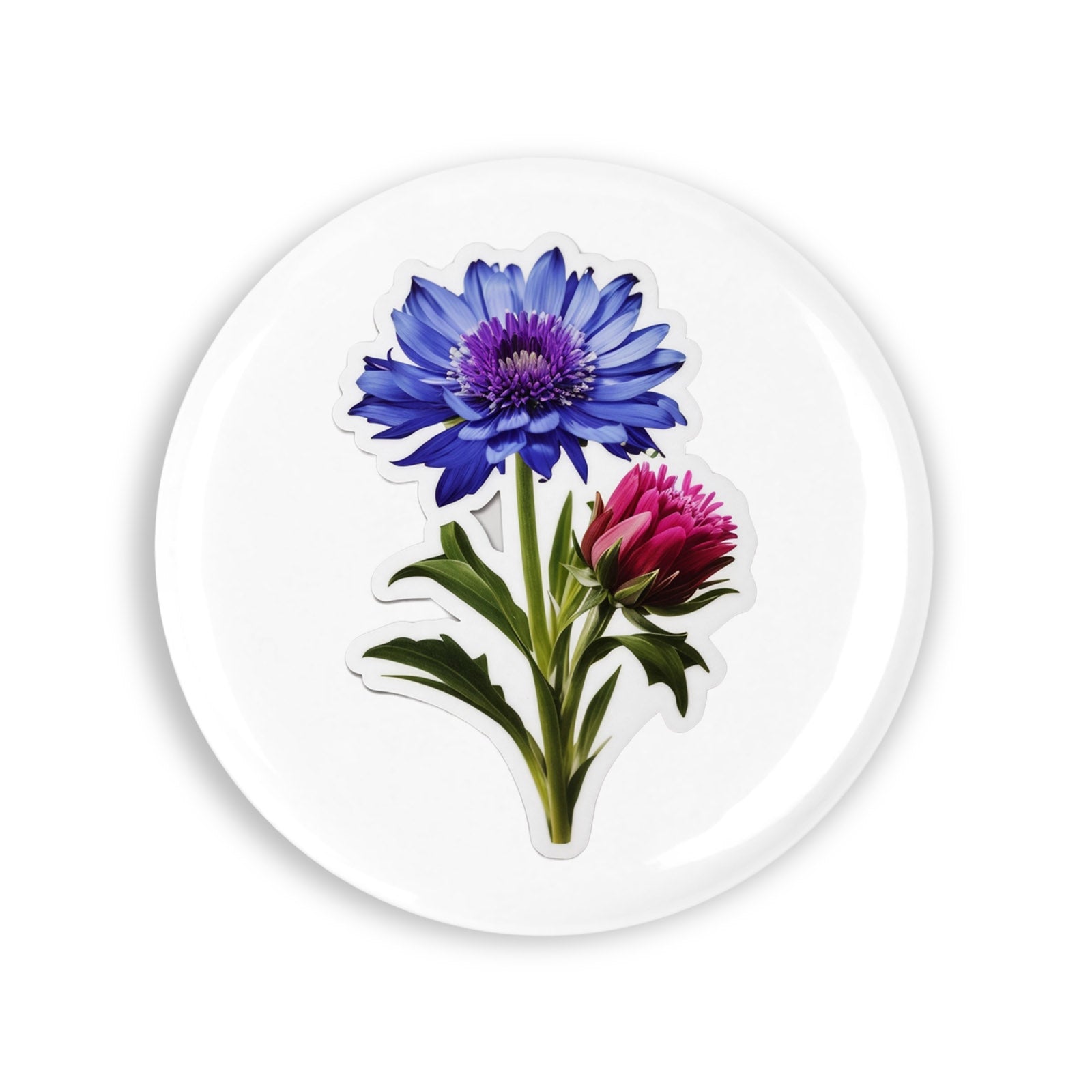 Set 4 insigne, Flori de albastrele, NO8016, Metal, 44 mm, Multicolor
