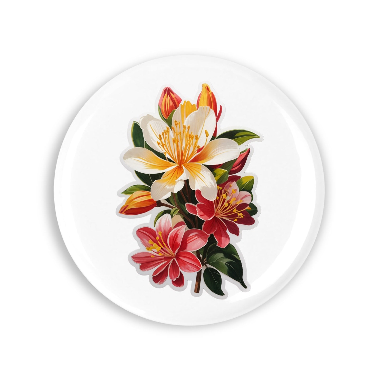 Set 4 insigne, Flori de caprifoi, NO8343, Metal, 44 mm, Multicolor