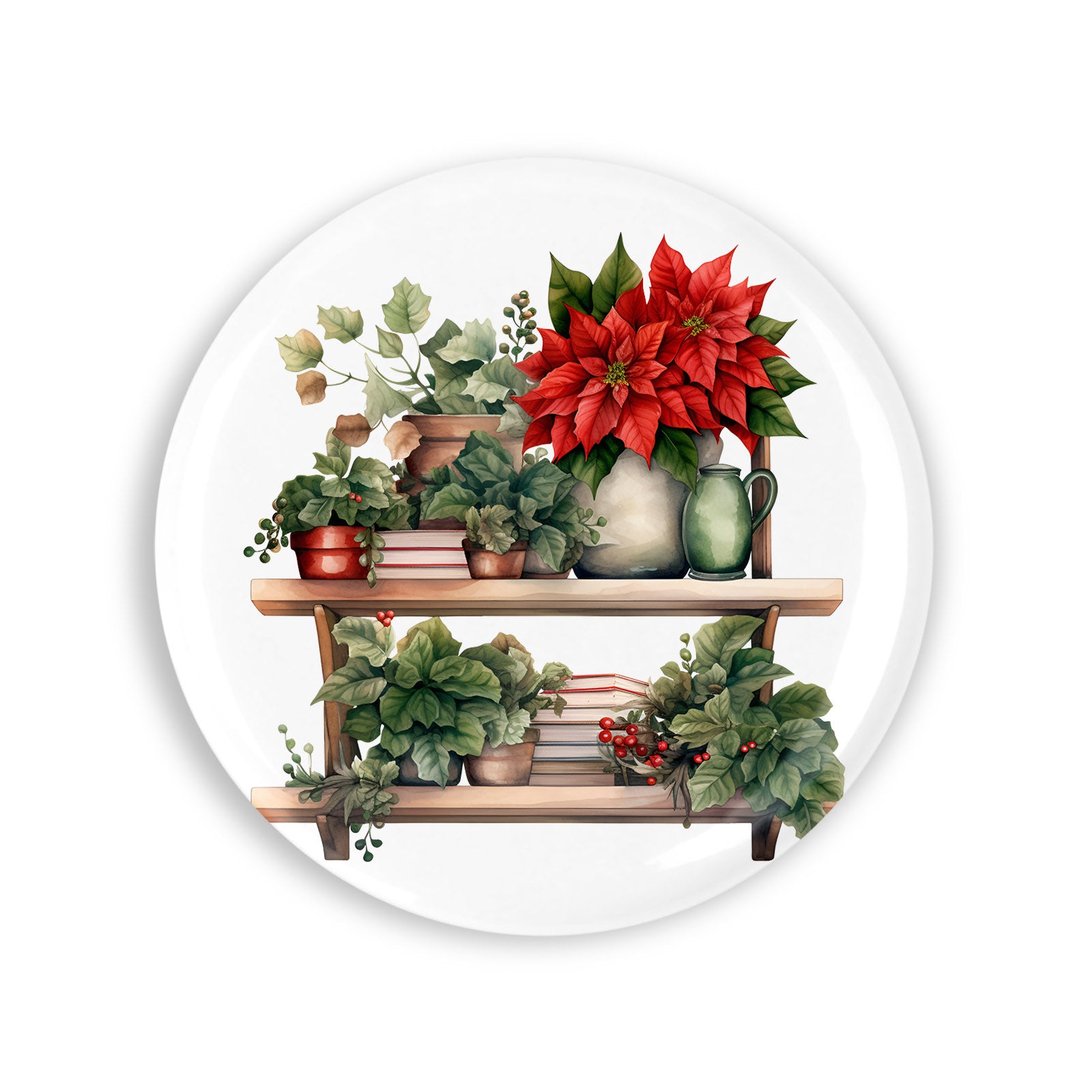 Set 4 insigne, Flori de craciun Charlote, NO6419, Metal, 44 mm, Multicolor