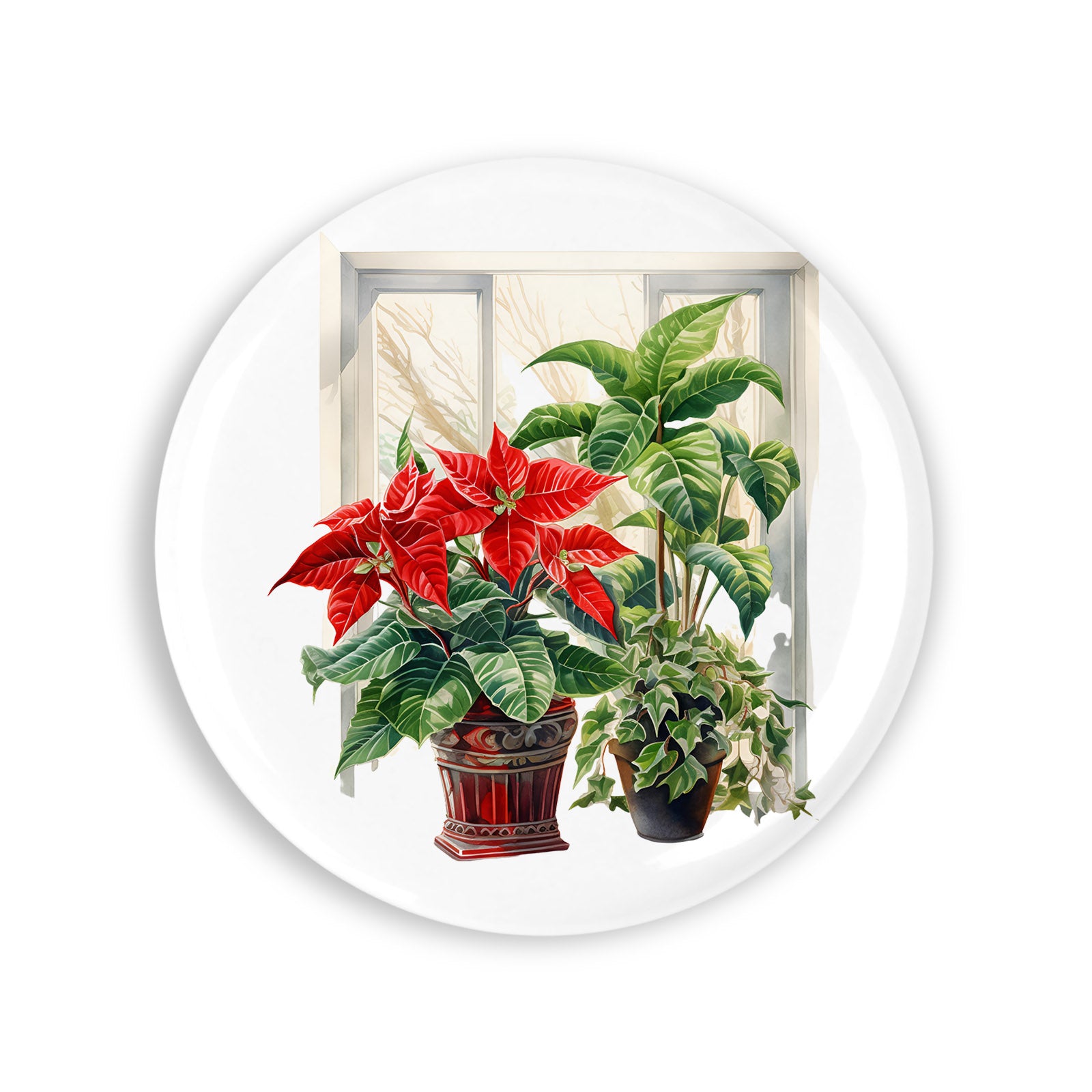 Set 4 insigne, Flori de craciun Lenna, NO3903, Metal, 44 mm, Multicolor