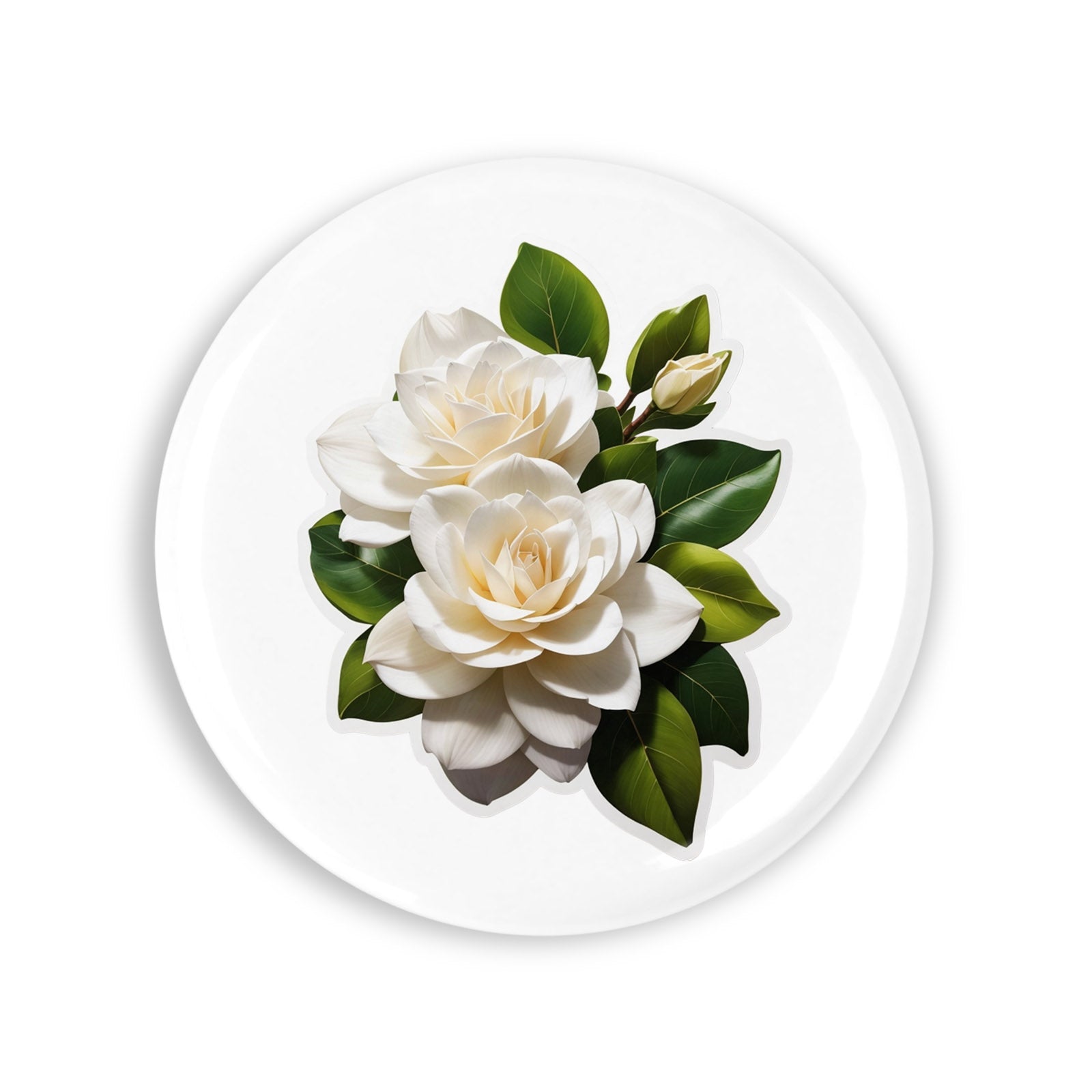 Set 4 insigne, Flori de gardenia cu boboci, NO8211, Metal, 44 mm, Multicolor
