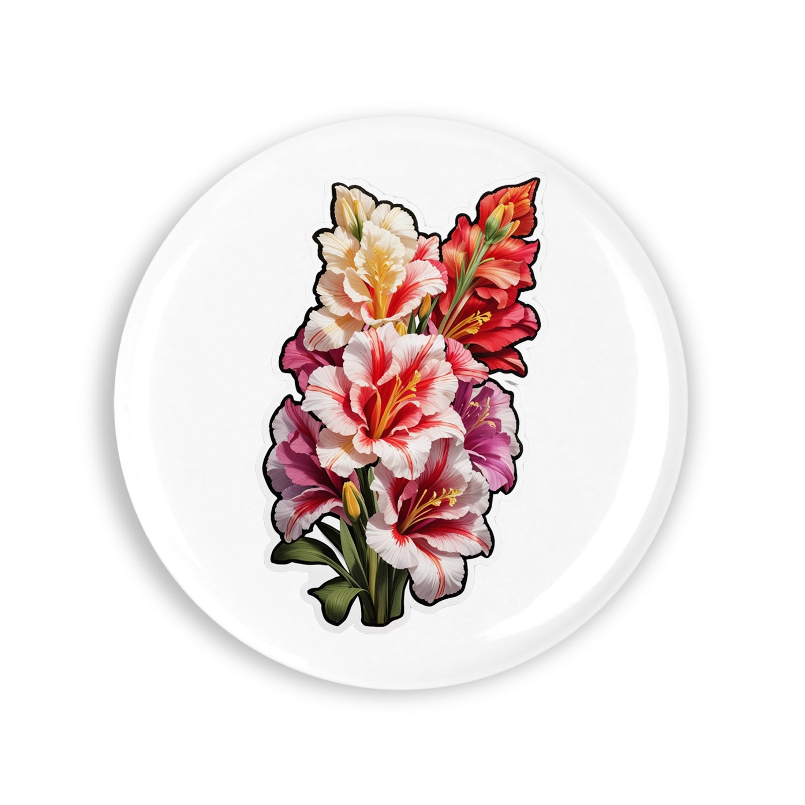 Set 4 insigne, Flori de gladiole, NO8257, Metal, 44 mm, Multicolor