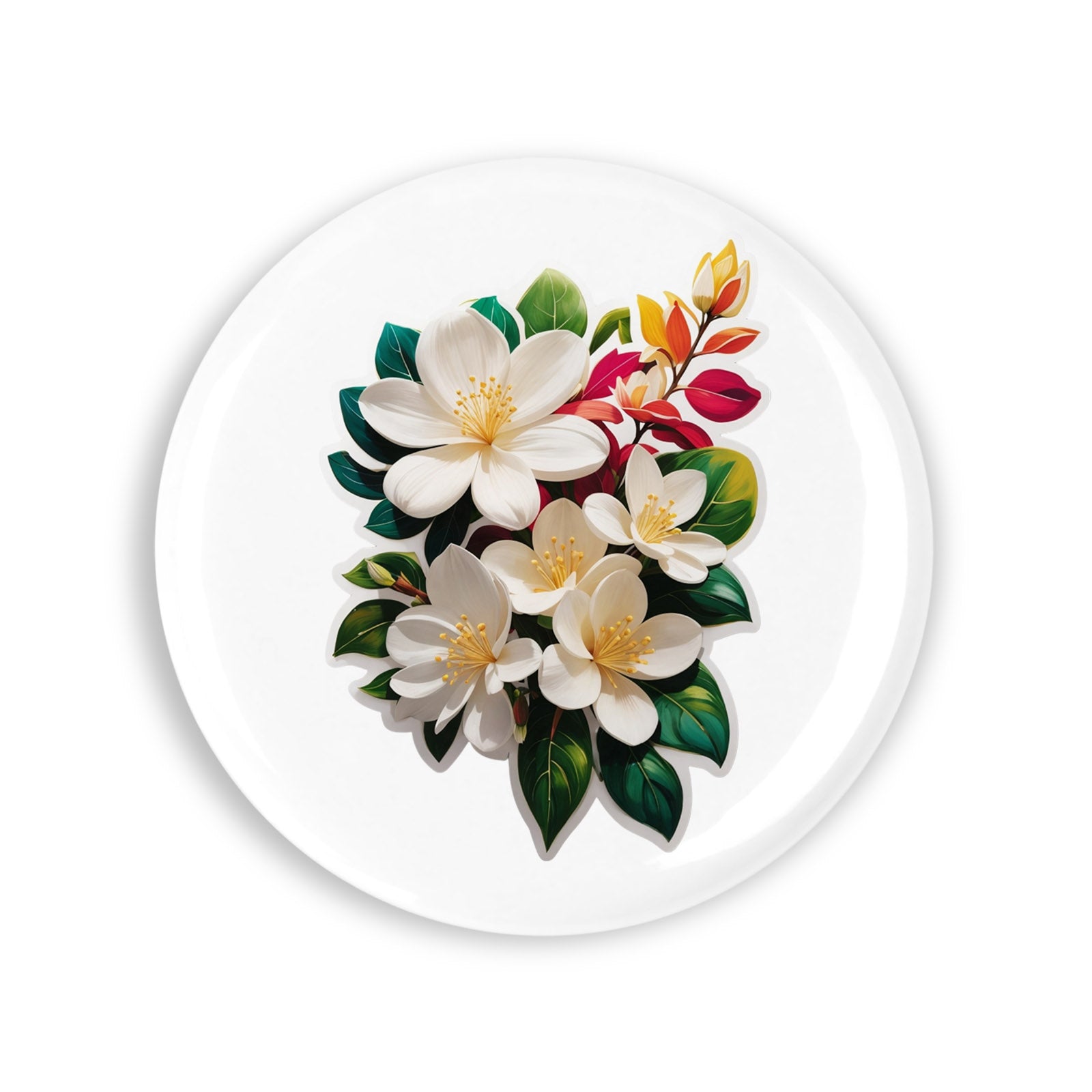 Set 4 insigne, Flori de iasomie cu frunze, NO8384, Metal, 44 mm, Multicolor