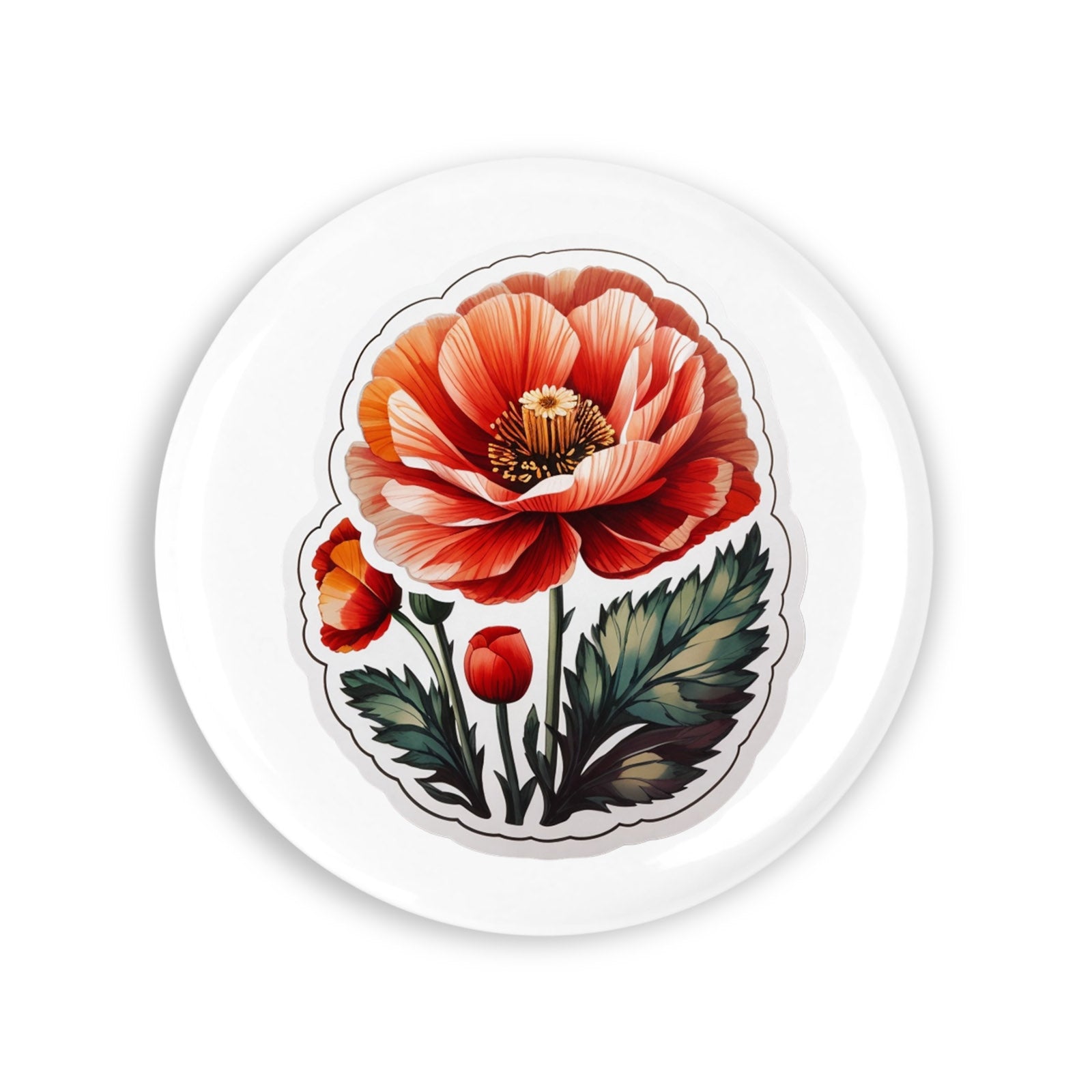 Set 4 insigne, Flori de mac, NO8753, Metal, 44 mm, Multicolor