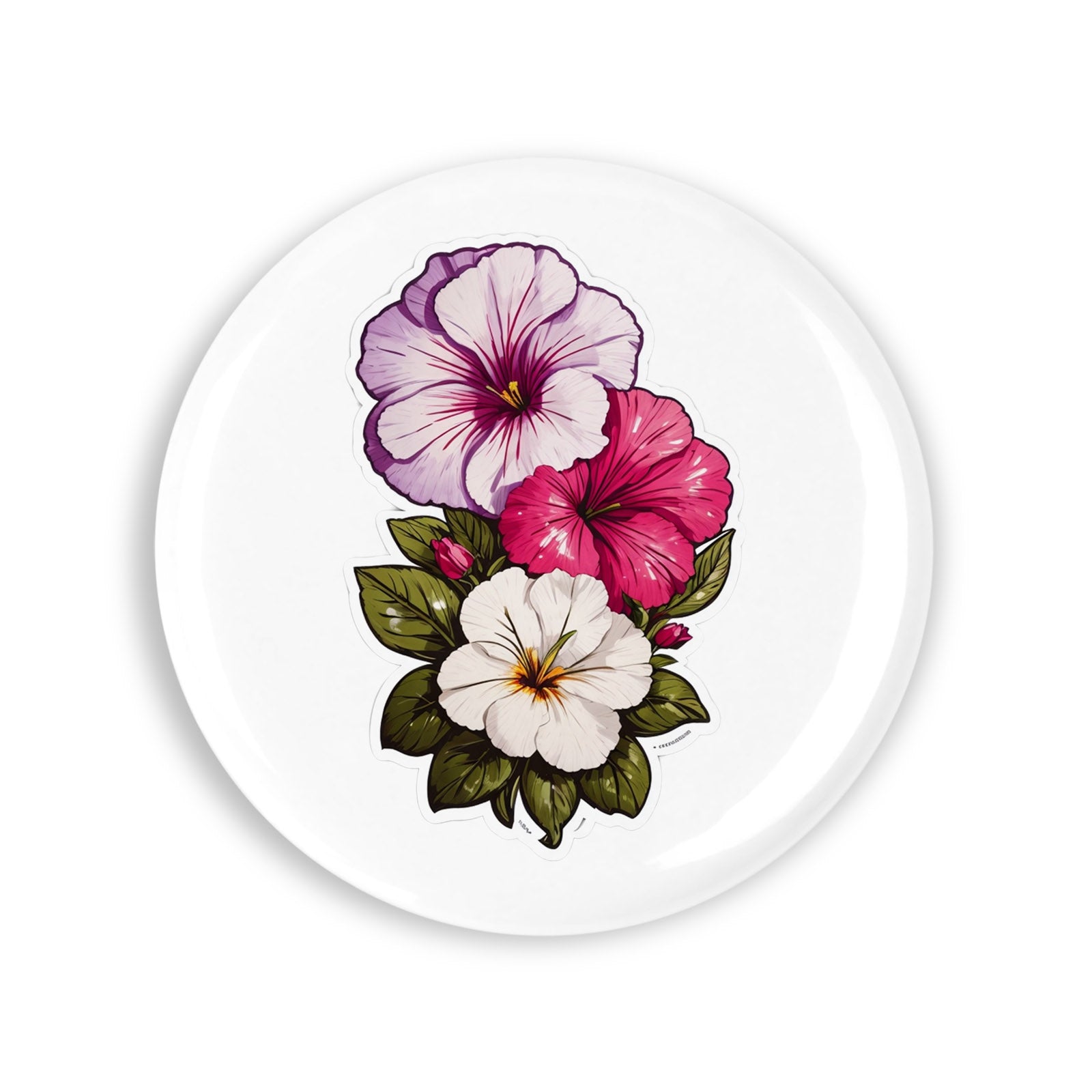 Set 4 insigne, Flori de petunii cu boboci, NO8700, Metal, 44 mm, Multicolor
