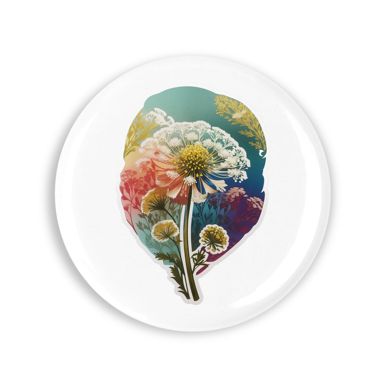 Set 4 insigne, Flori de Queen Annes Lace, NO8779, Metal, 44 mm, Multicolor
