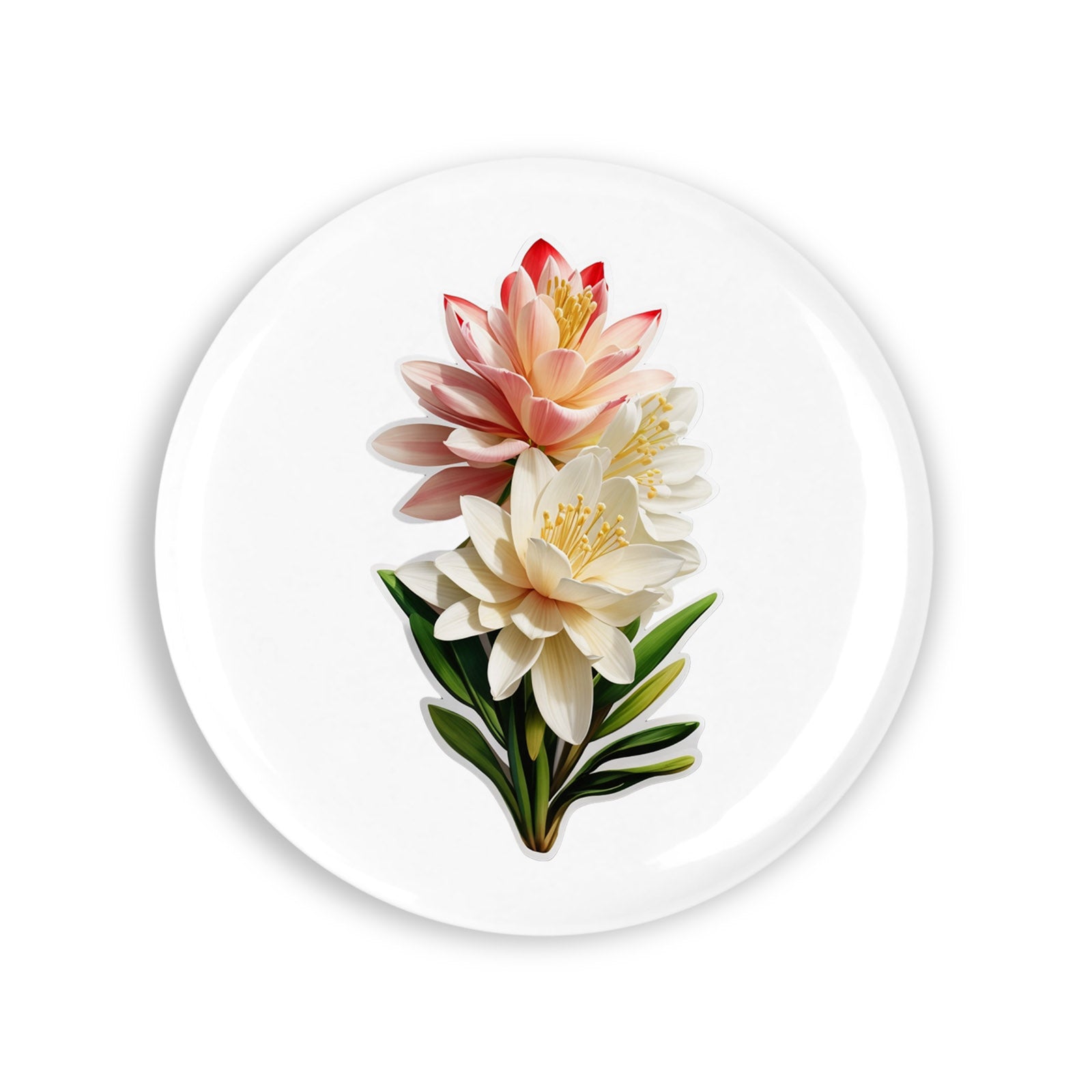 Set 4 insigne, Flori de tuberoze, NO8993, Metal, 44 mm, Multicolor