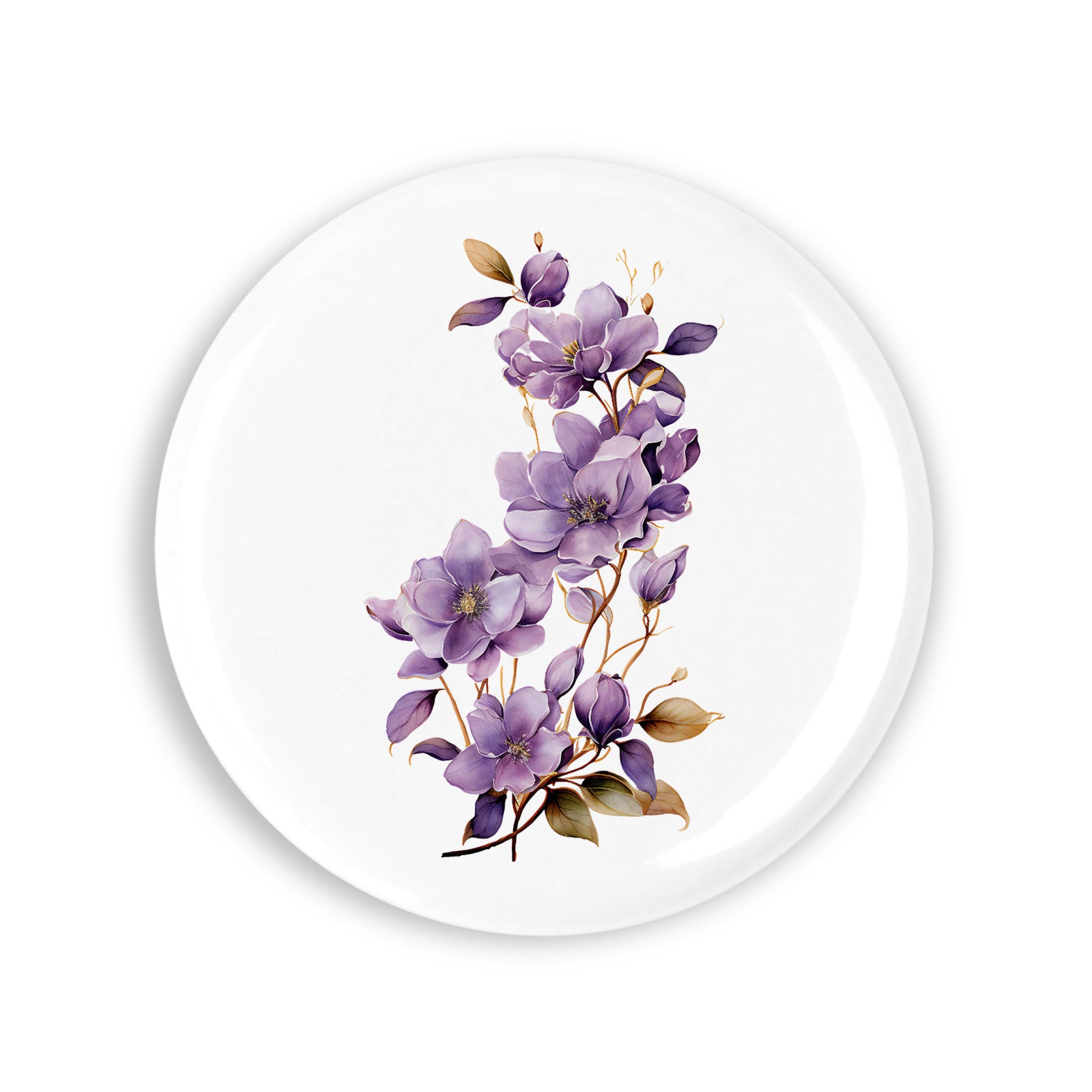 Set 4 insigne, Flori mov cu frunze maro, NO2302, Metal, 44 mm, Multicolor