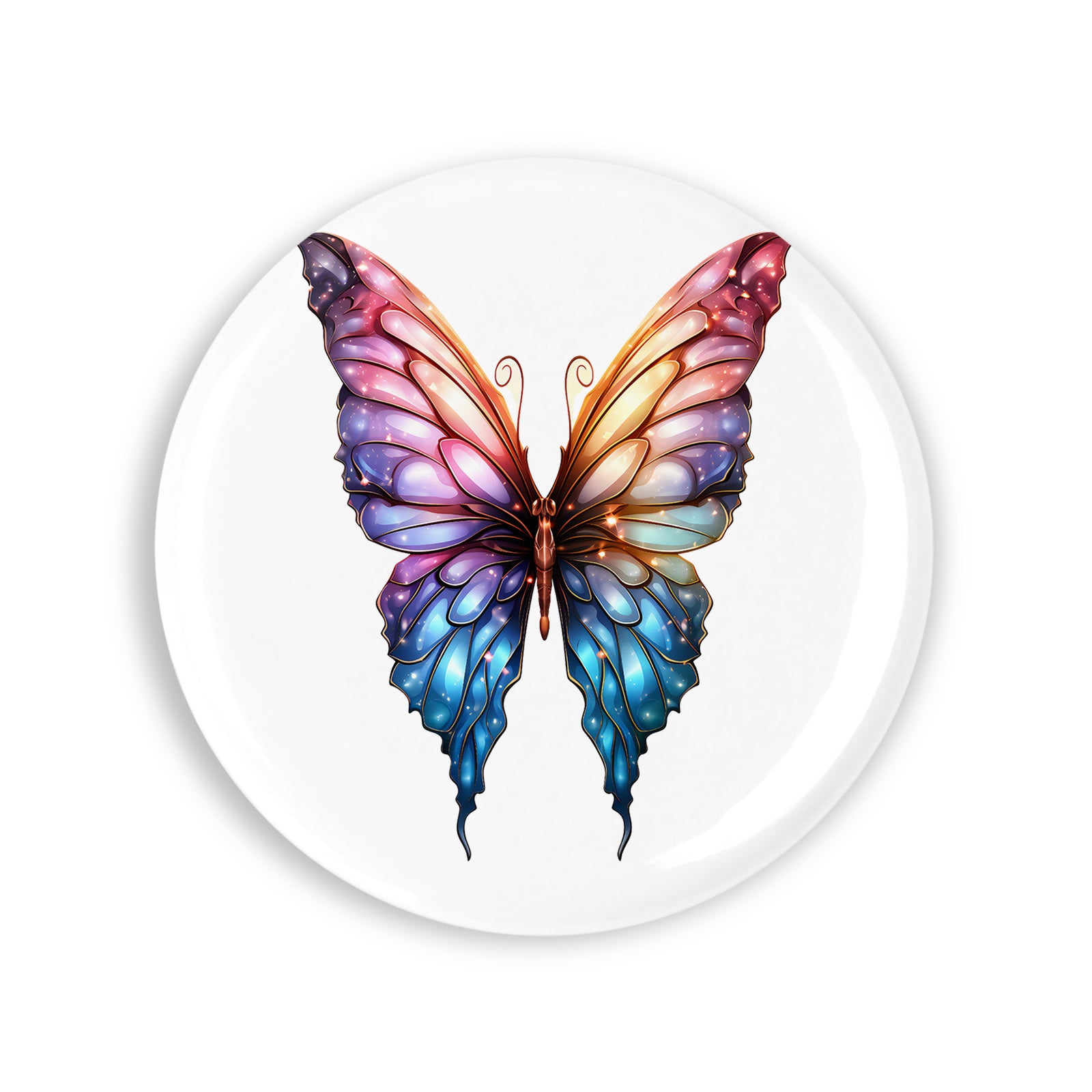 Set 4 insigne, Fluture curcubeu Primavara, NO1641, Metal, 44 mm, Multicolor
