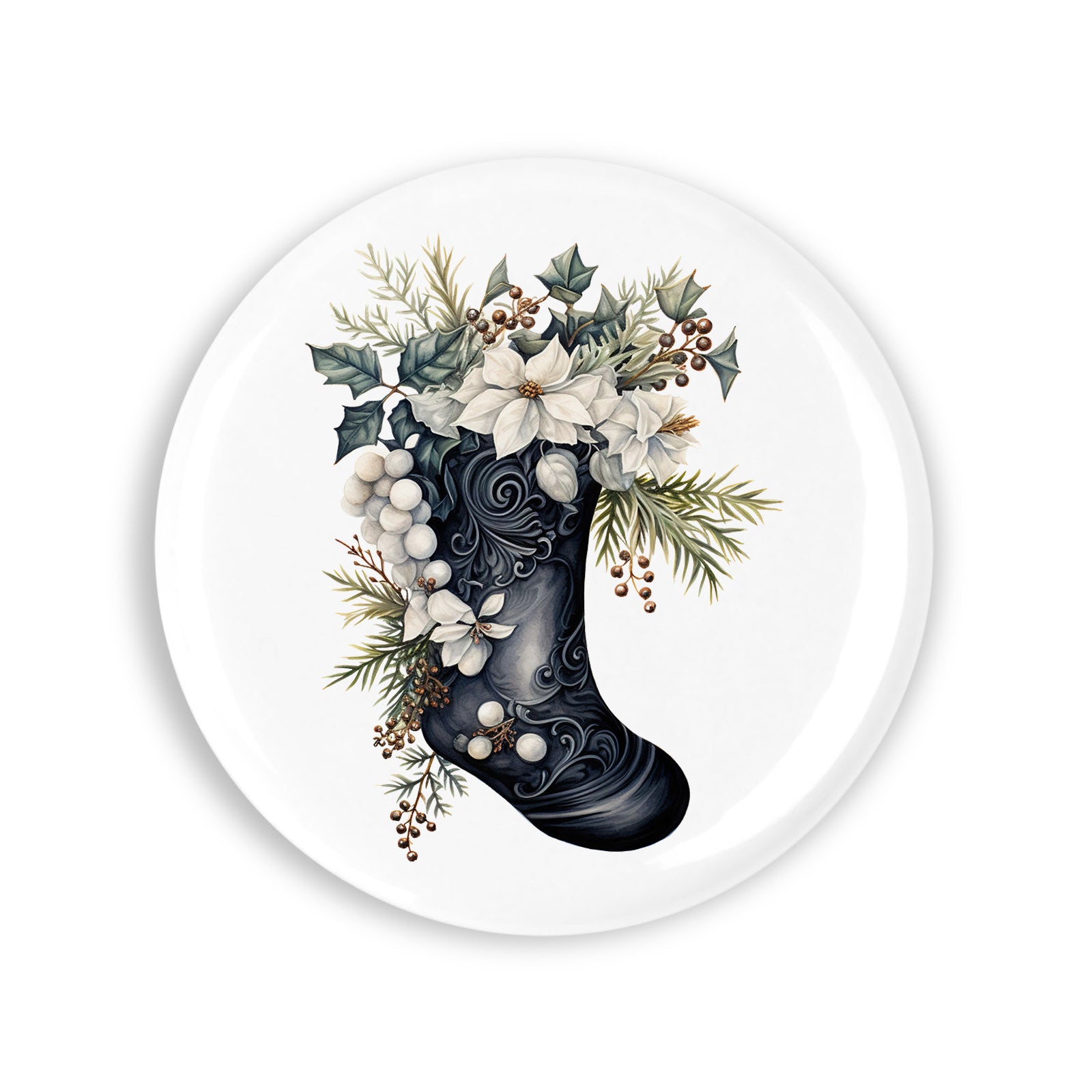 Set 4 insigne, Ghetuta neagra cu flori albe, NO1356, Metal, 44 mm, Multicolor