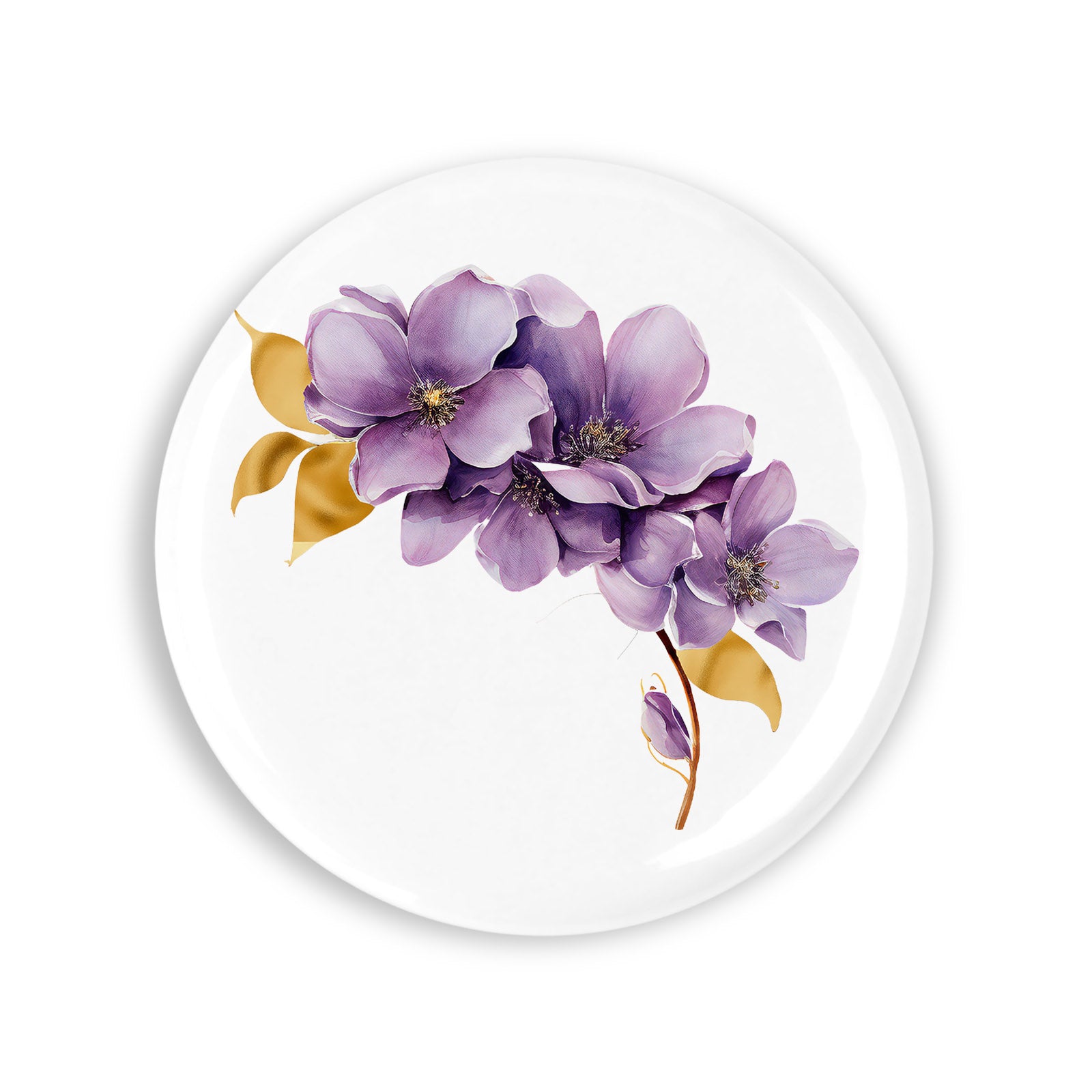 Set 4 insigne, Ghirlanda cu flori mov si frunze aurii, NO2846, Metal, 44 mm, Multicolor