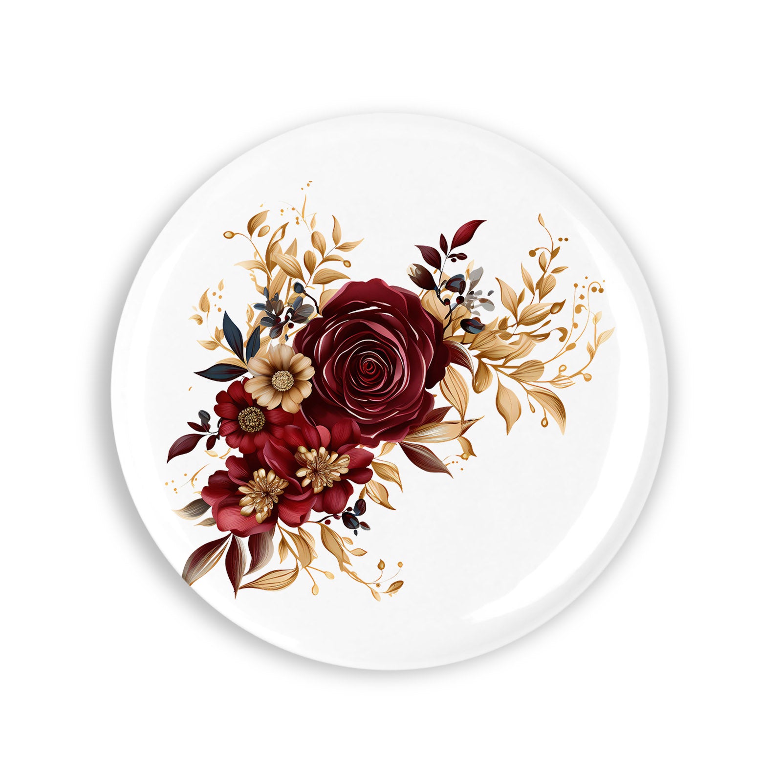 Set 4 insigne, Ghirlanda de flori rosu cu auriu, NO3931, Metal, 44 mm, Multicolor