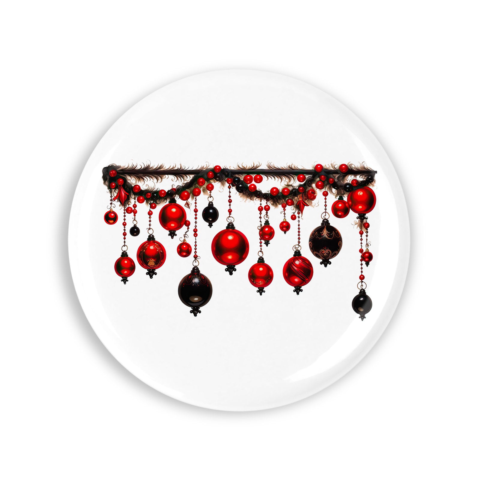 Set 4 insigne, Ghirlanda de globuri rosii si negre, NO6428, Metal, 44 mm, Multicolor