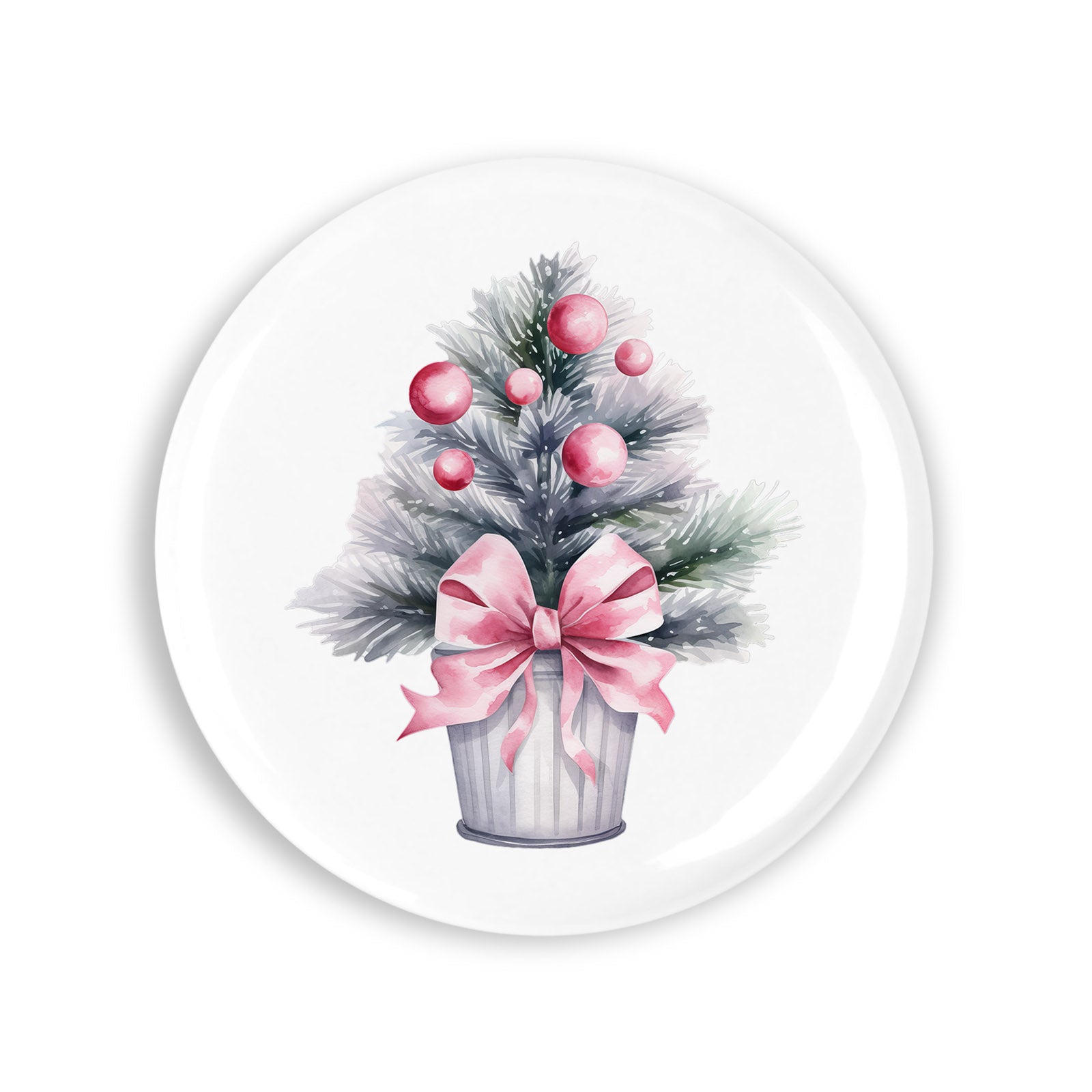 Set 4 insigne, Ghiveci cu brad argintiu de craciun, NO625, Metal, 44 mm, Multicolor