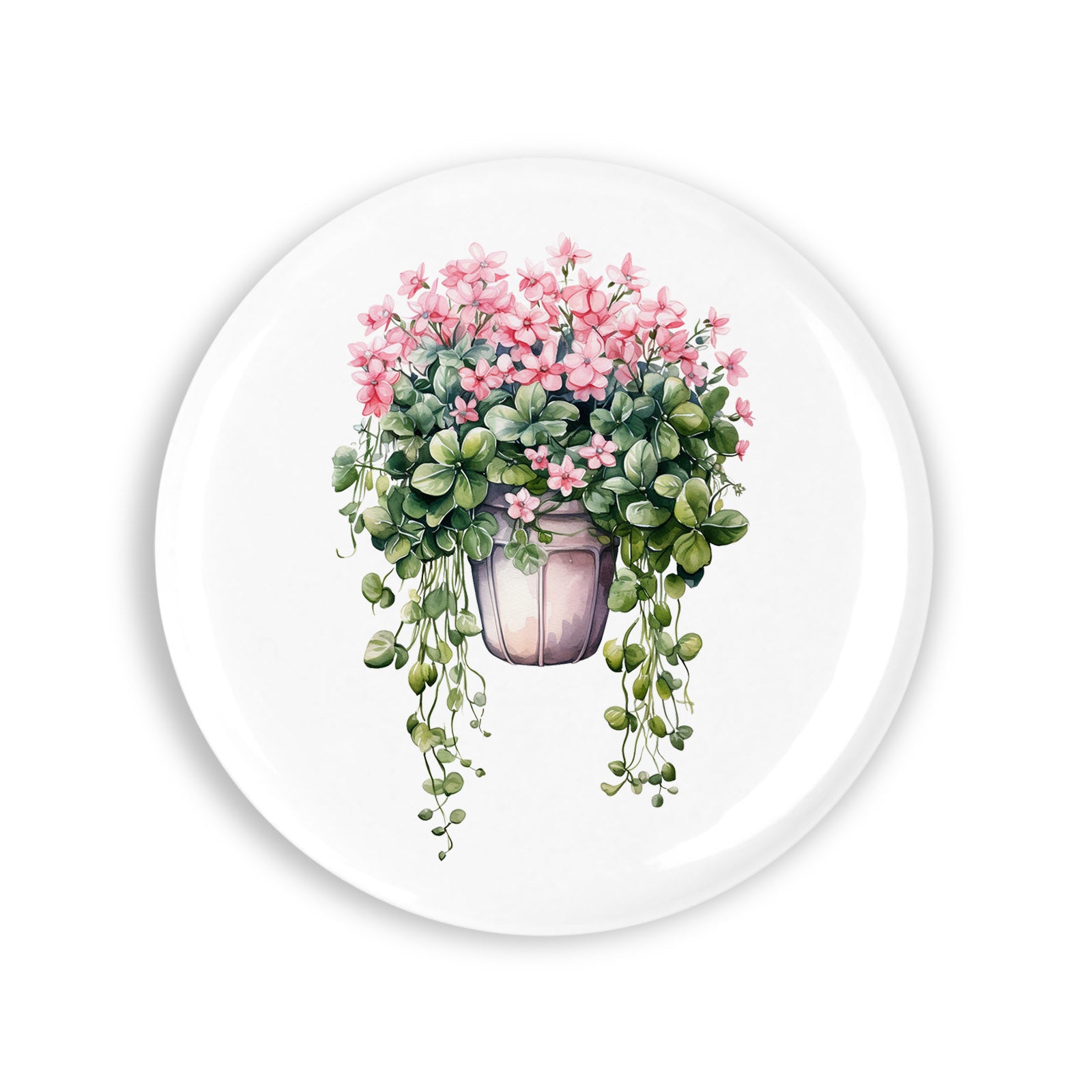 Set 4 insigne, Ghiveci sucu flori de primavara rozspendat, NO4111, Metal, 44 mm, Multicolor