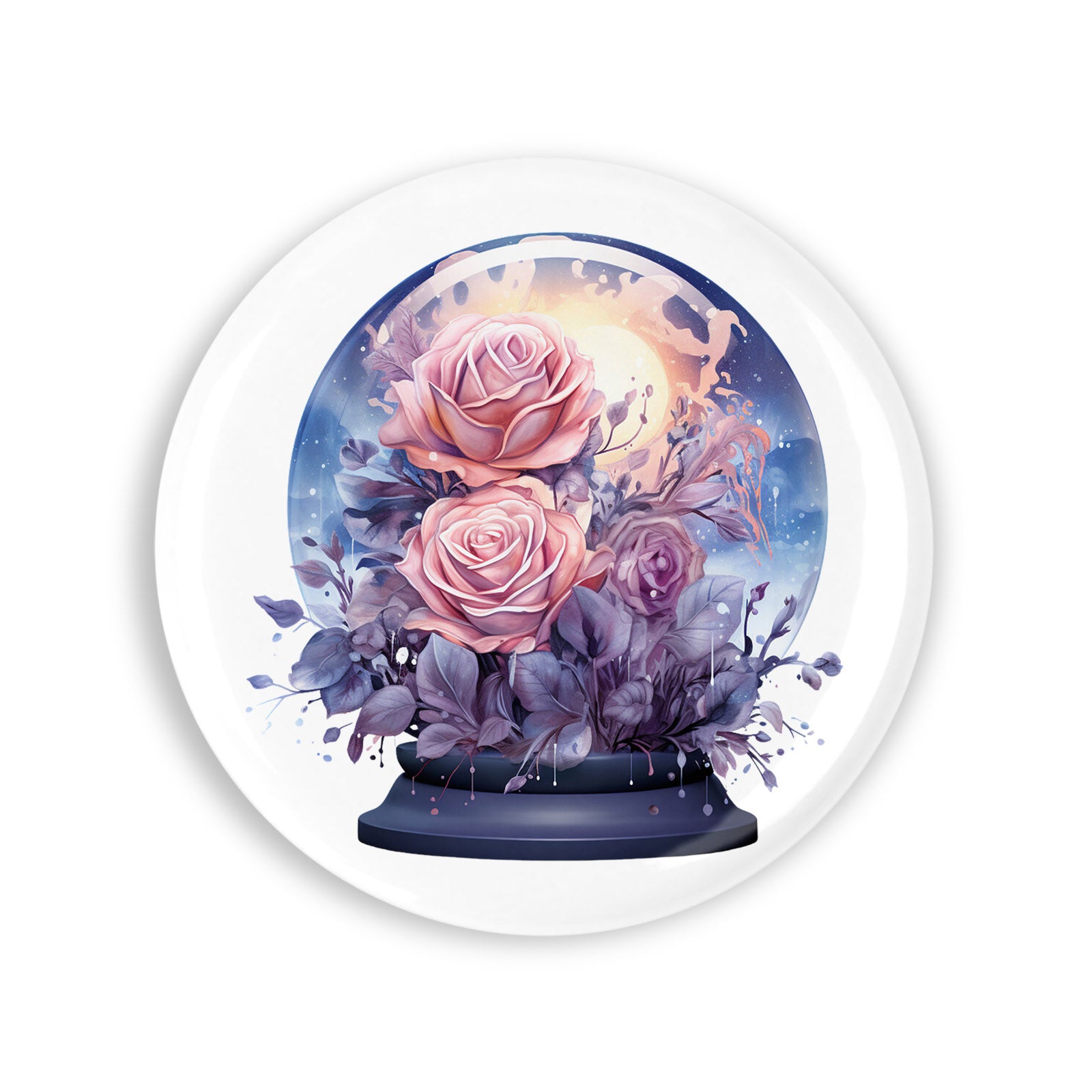 Set 4 insigne, Globul de cristal Noapte cu trandafiri, NO598, Metal, 44 mm, Multicolor