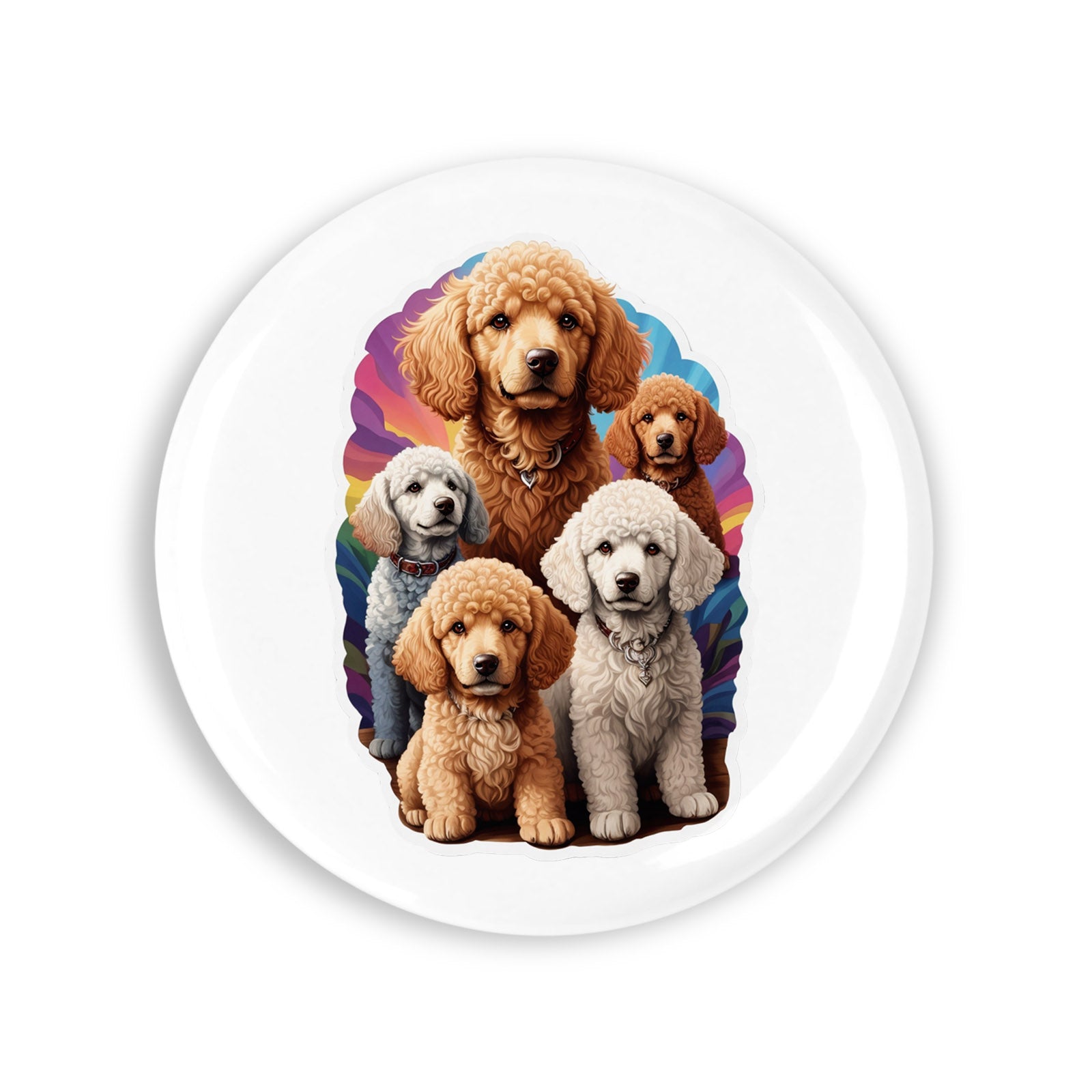 Set 4 insigne, Grup de caini poodle, NO8750, Metal, 44 mm, Multicolor