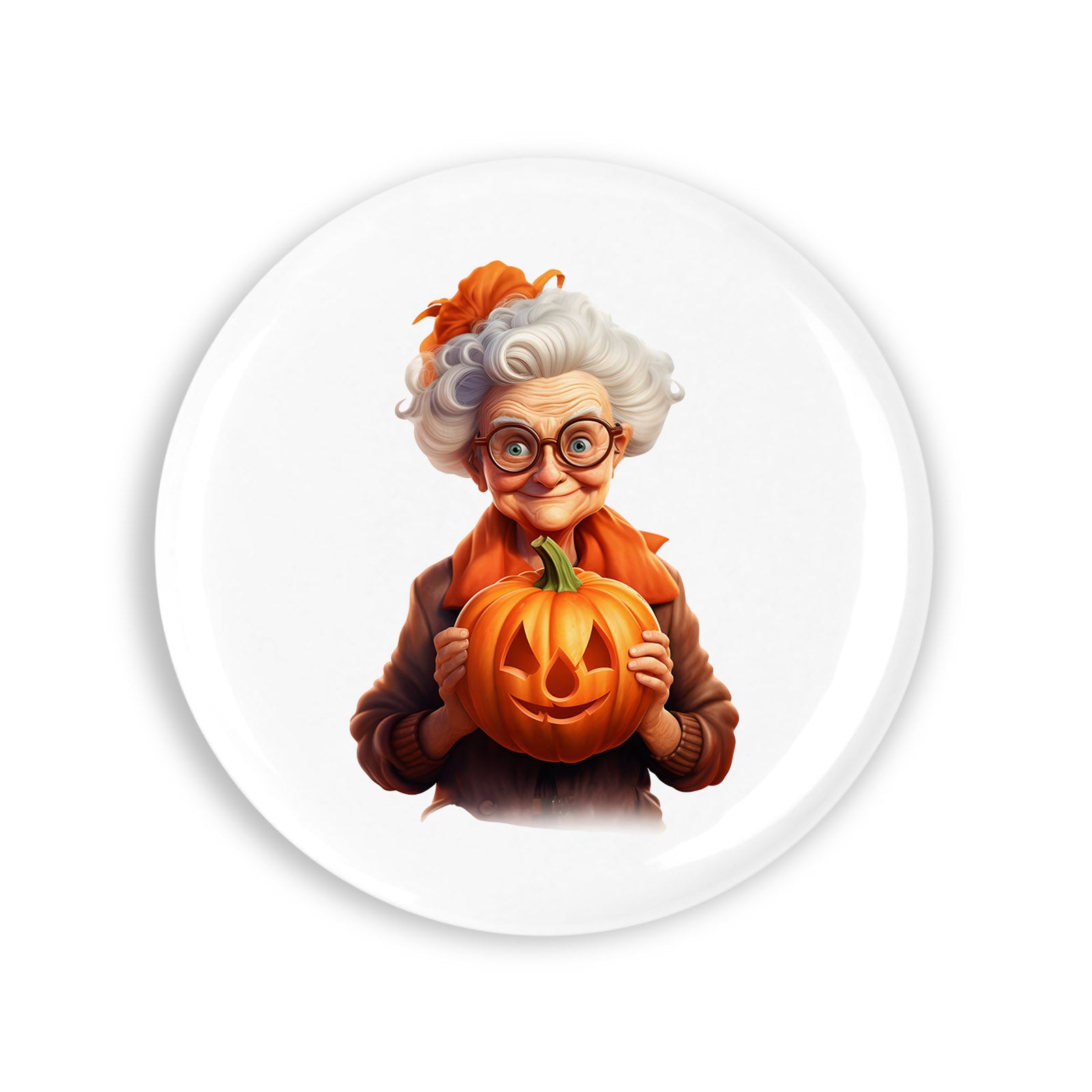 Set 4 insigne, Halloween bunica cu dovleacul, NO1571, Metal, 44 mm, Multicolor