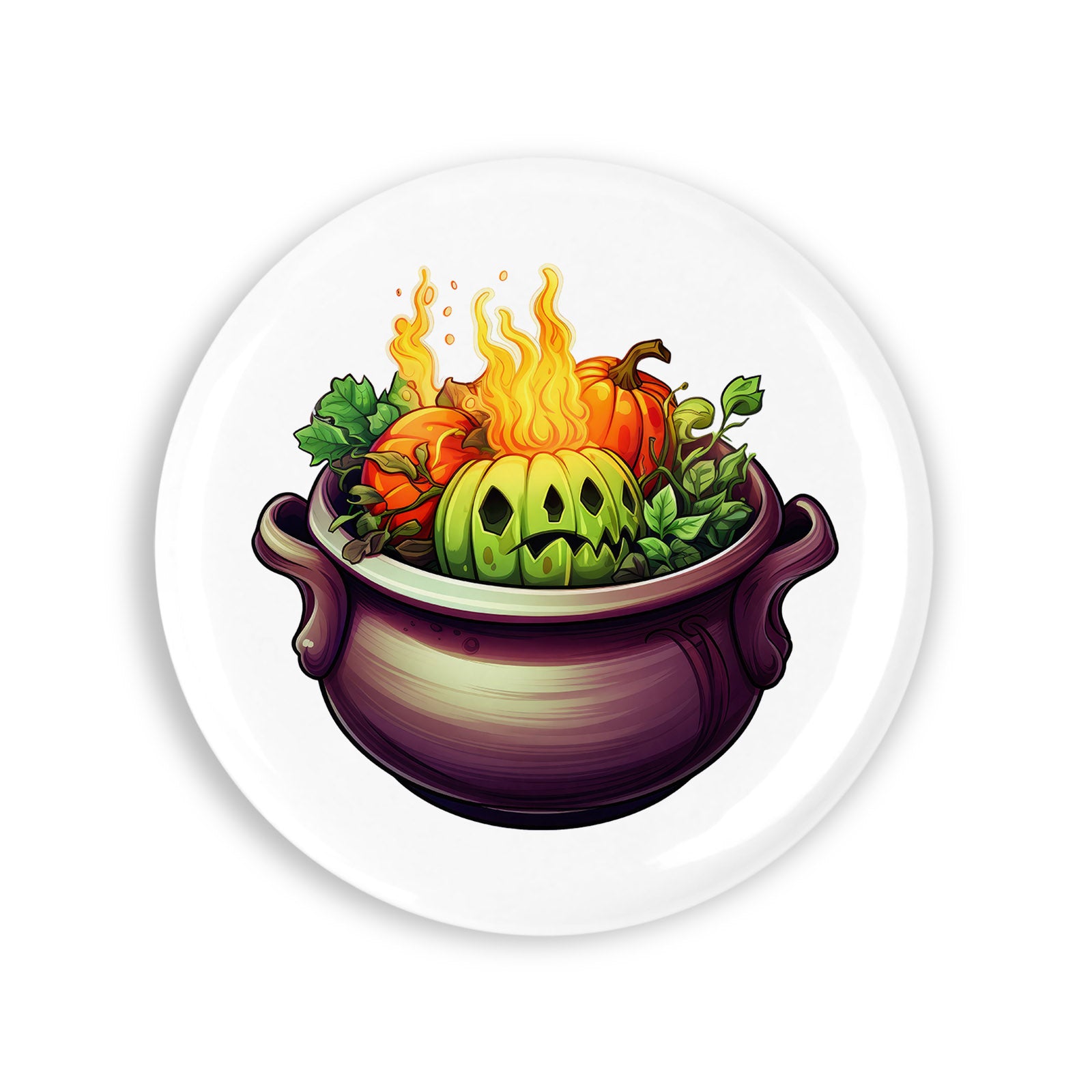 Set 4 insigne, Halloween Oala cu dovleci in flacari, NO5680, Metal, 44 mm, Multicolor