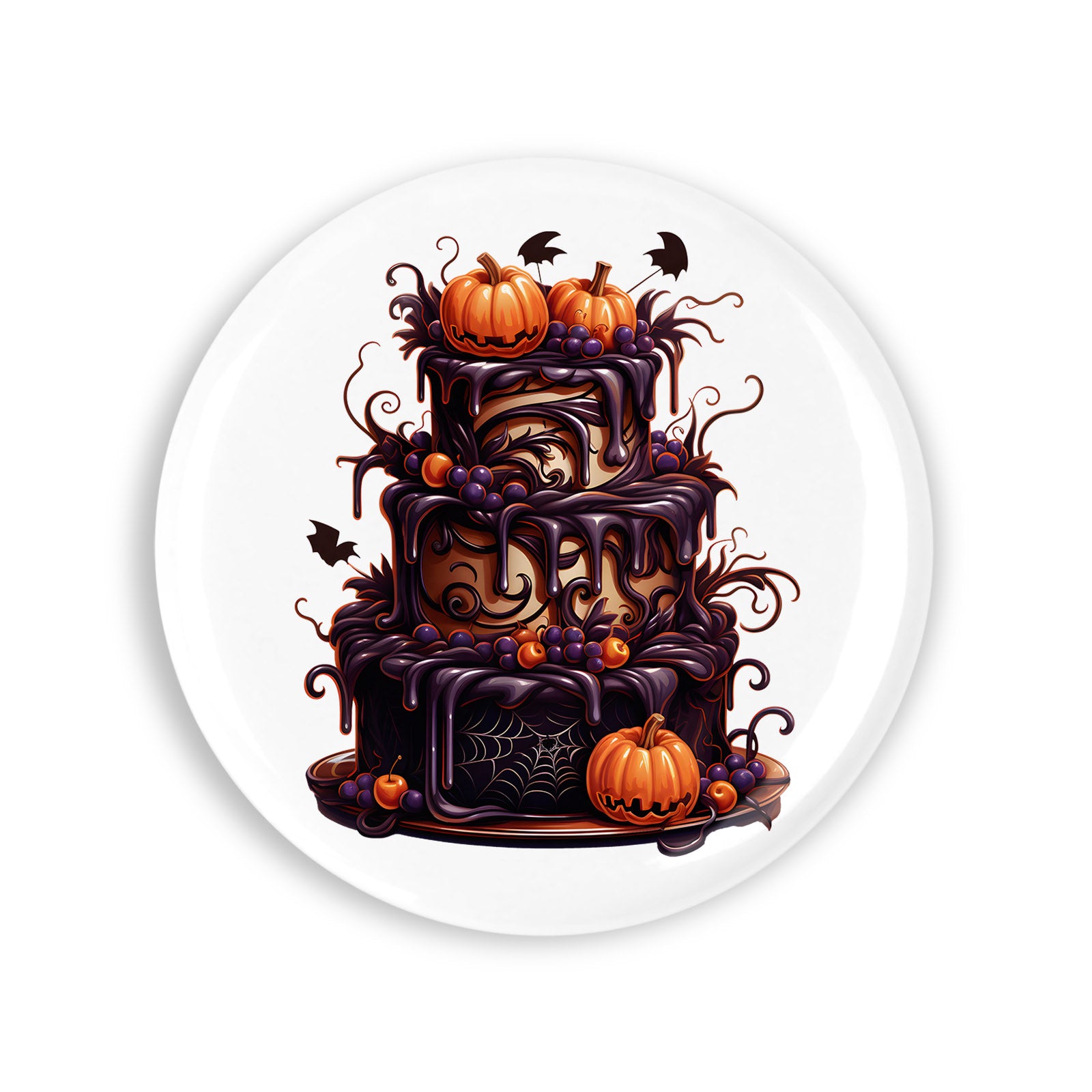 Set 4 insigne, Halloween Tort de ciocolata cu dovleac, NO3805, Metal, 44 mm, Multicolor