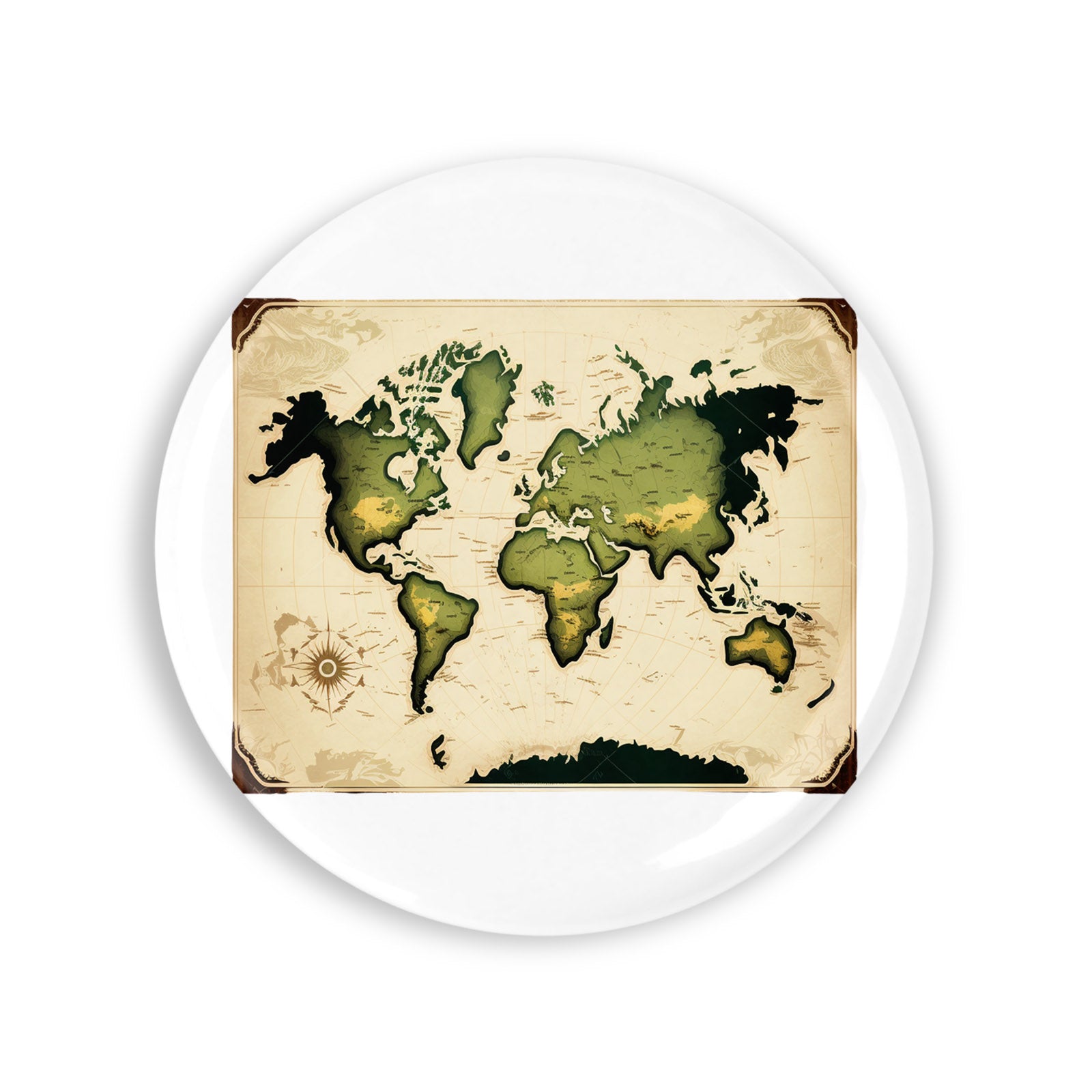 Set 4 insigne, Harta fizica a lumii retro, NO10420, Metal, 44 mm, Multicolor