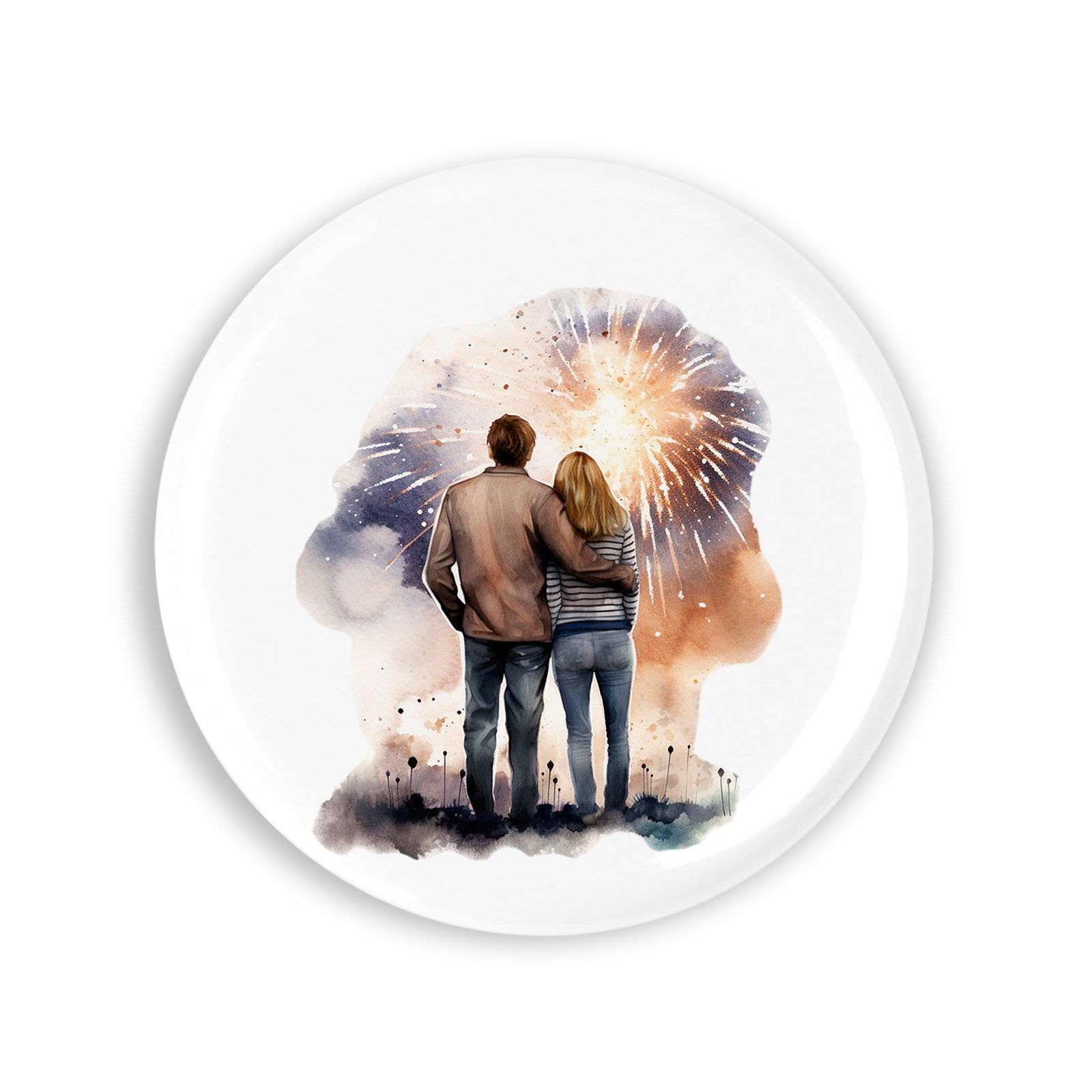 Set 4 insigne, Indragostitii privesc artificiile, NO4628, Metal, 44 mm, Multicolor